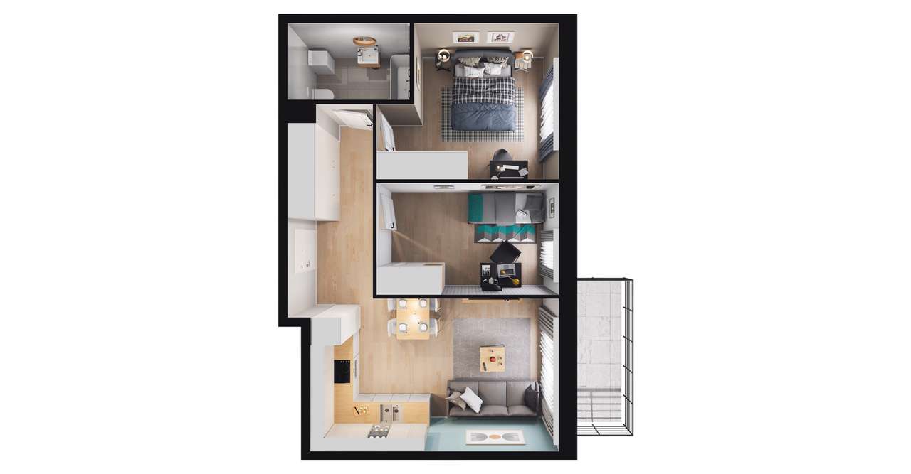 3-pokojowe mieszkanie 49m2 + loggia Bez Prowizji
