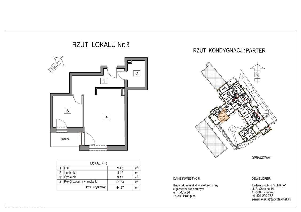 TADEUSZ KOBUS "ELEKTA" USŁUGI-HANDEL-IMPORT-EKSPORTMieszkanie na sprzedażRynek pierwotny2 pokojewarmińsko-mazurskieolsztyńskiBiskupiecBiskupiecMieszkanie Nr 3 - Parter - 44,67m2