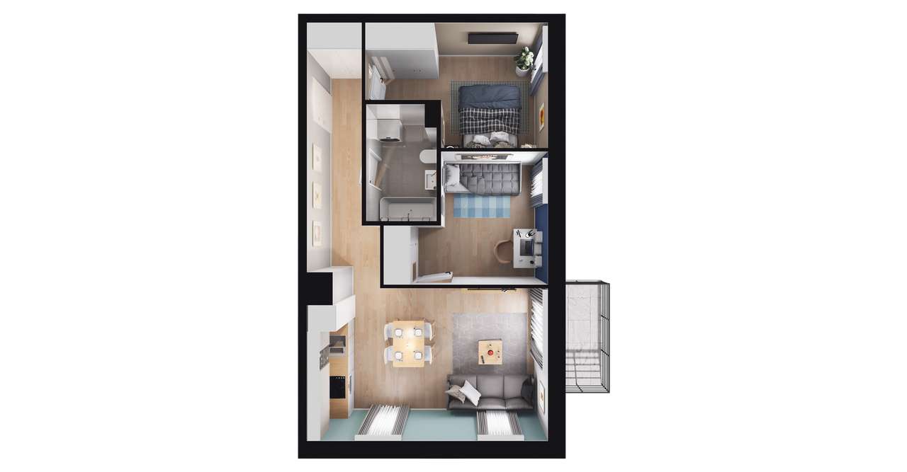 1-pokojowe mieszkanie 38m2 + 2 balkony