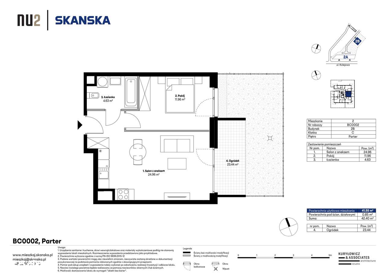 2-pokojowe mieszkanie 42m2 + ogródek