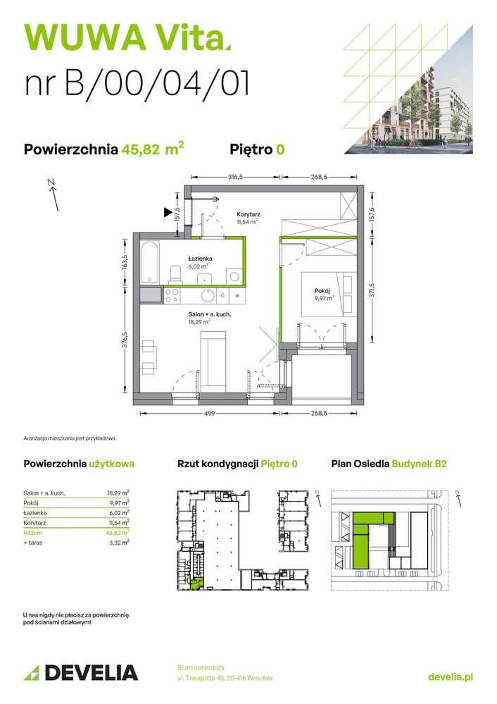 2-pokojowe mieszkanie 45m2 + taras Bezpośrednio