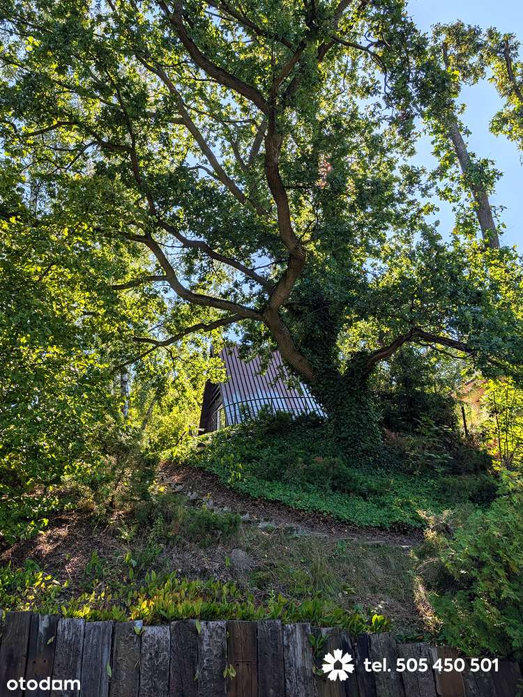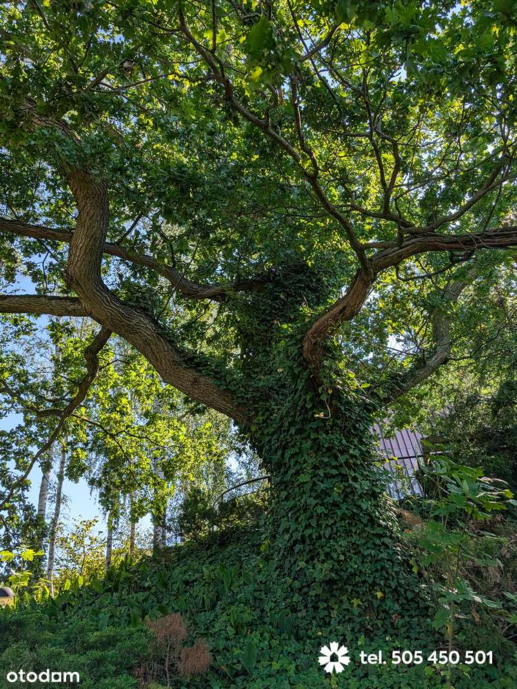 Kilkusetletni Dąb na działce z domkiem nad jeziorem
