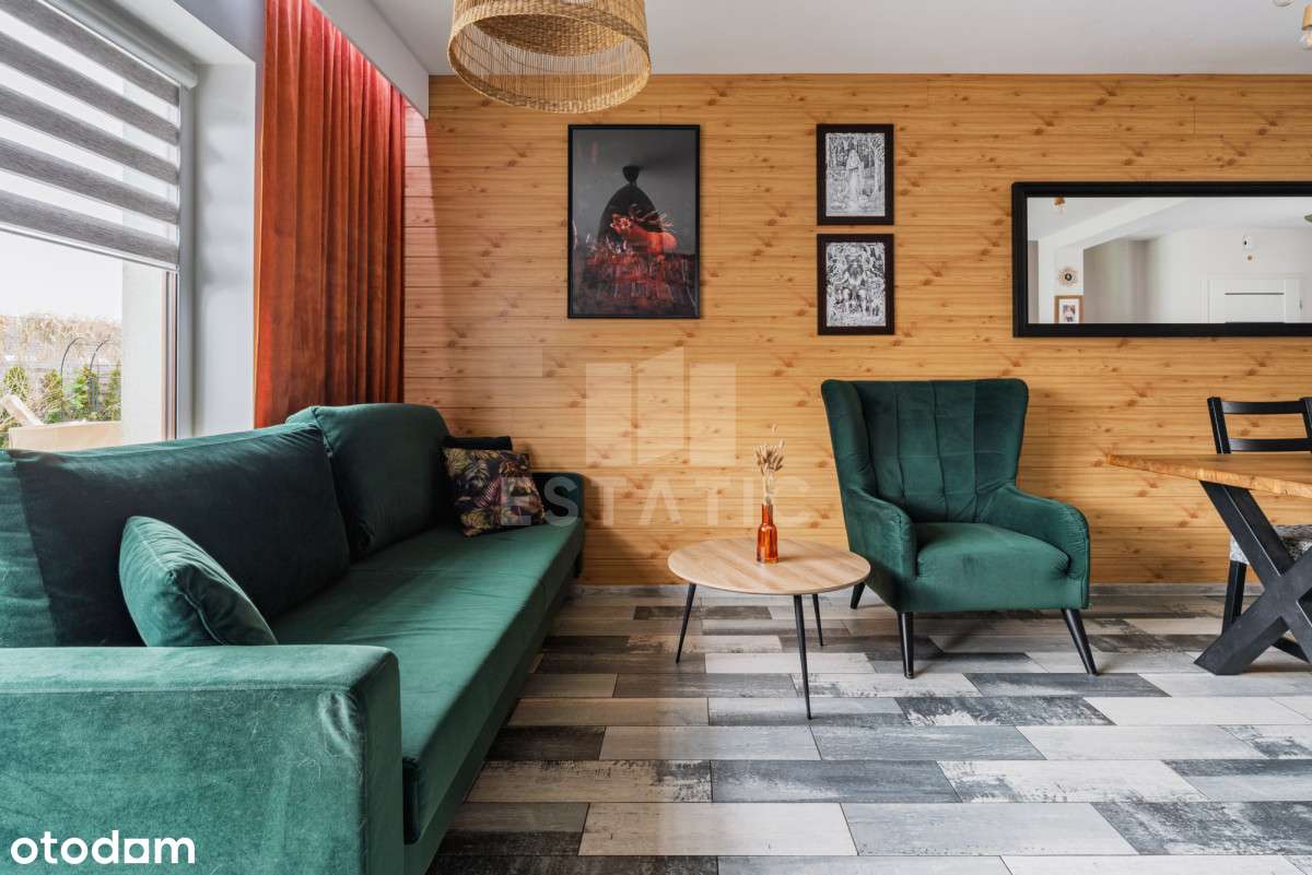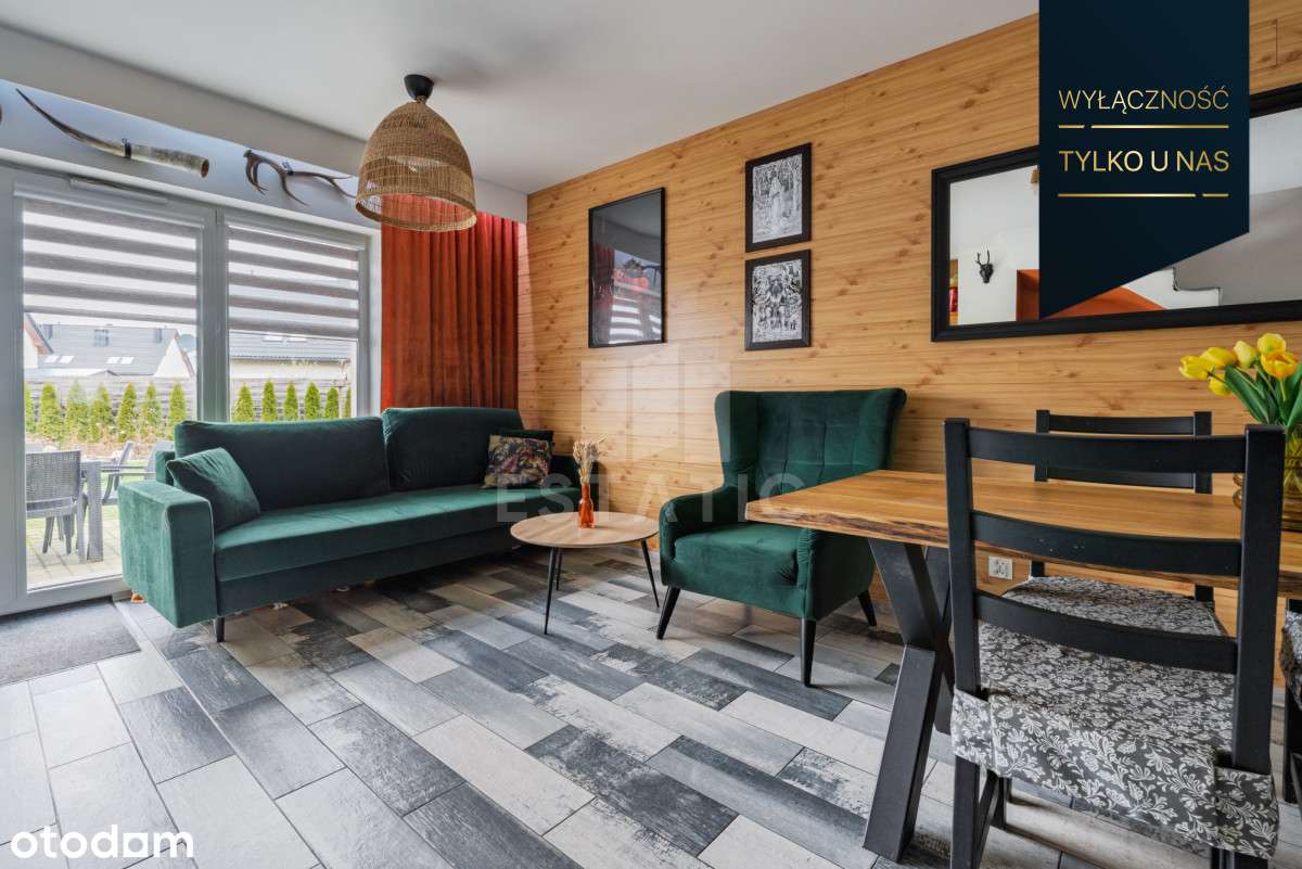 Przytulny dom z ogrodem w stylu chalet - komfort i funkcjonalność blisko Trójmiasta.Na sprzedaż połowa bliźniaka o powierzchni użytkowej 68,42 m² (powierzchnia całkowita 73,27 m² + dodatkowo poddasze ...