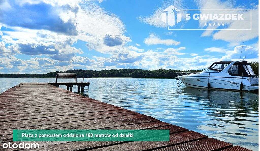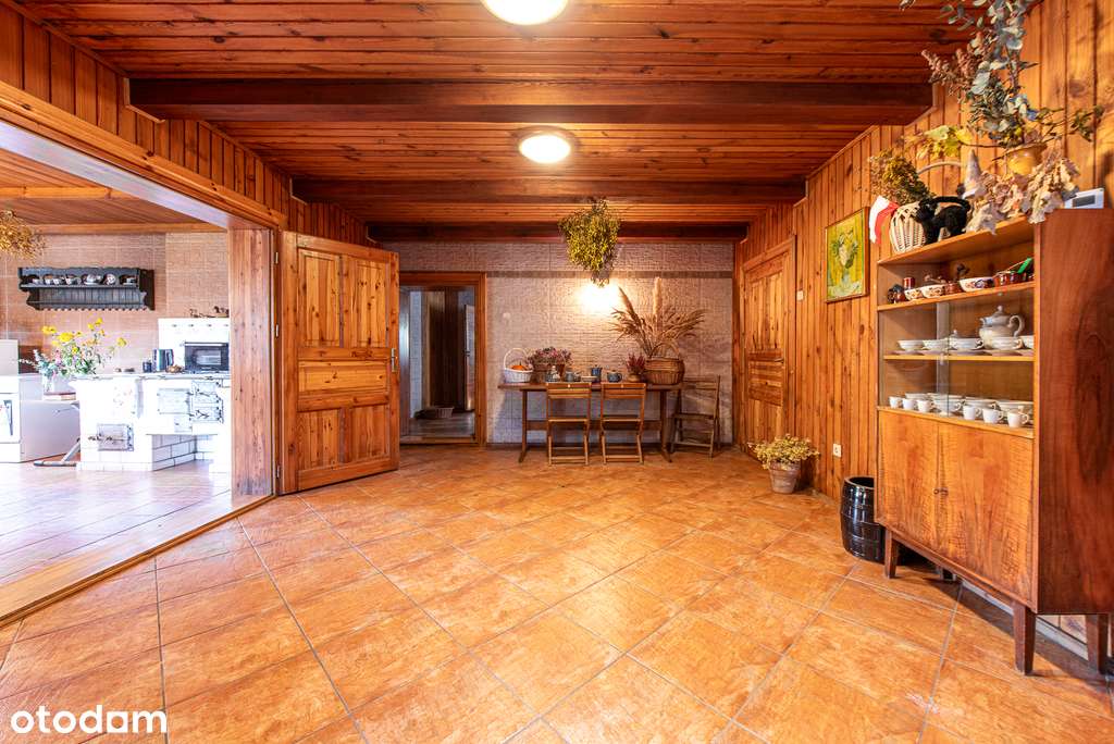 Drewniany dom przy jeziorze, duża działka