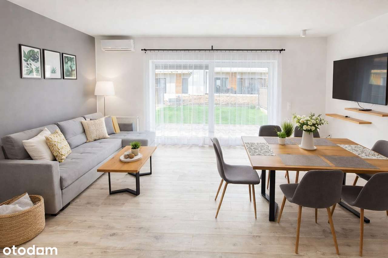 Dom w zabudowie szeregowej z garażem i ogródkiem na zamkniętym osiedlu