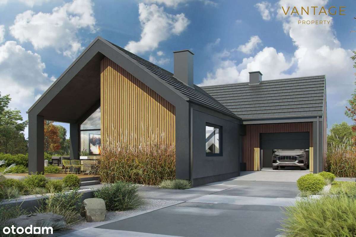 Nowoczesny dom parterowy z garażem (powiat wielicki)