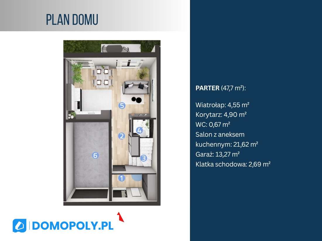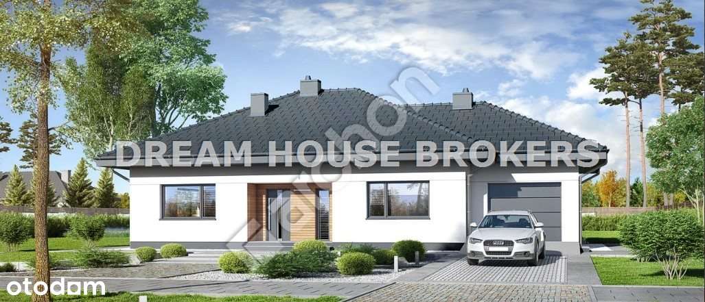 Dom parterowy z garażem 1-stanowiskowym na 8-arowej działce