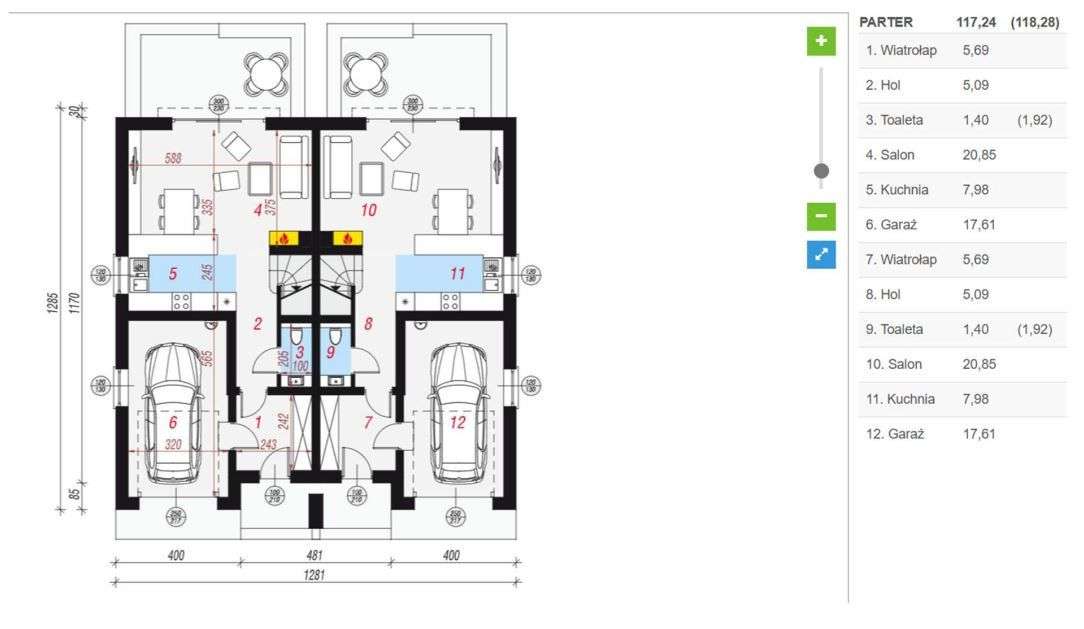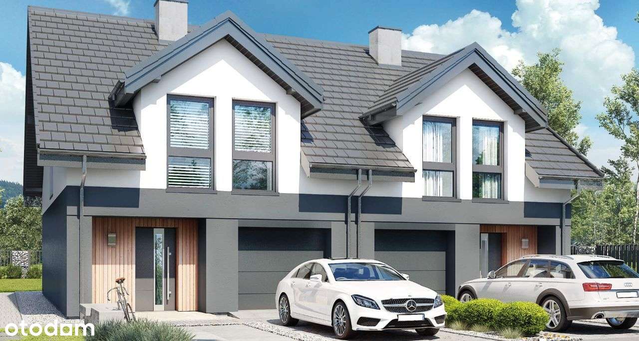 Dom w zabudowie bliźniaczej z 5a działką+elewacja