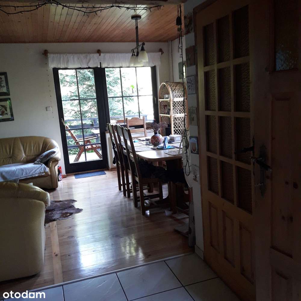 Domek w lesie na zboczu góry z widokiem na górę Skalite