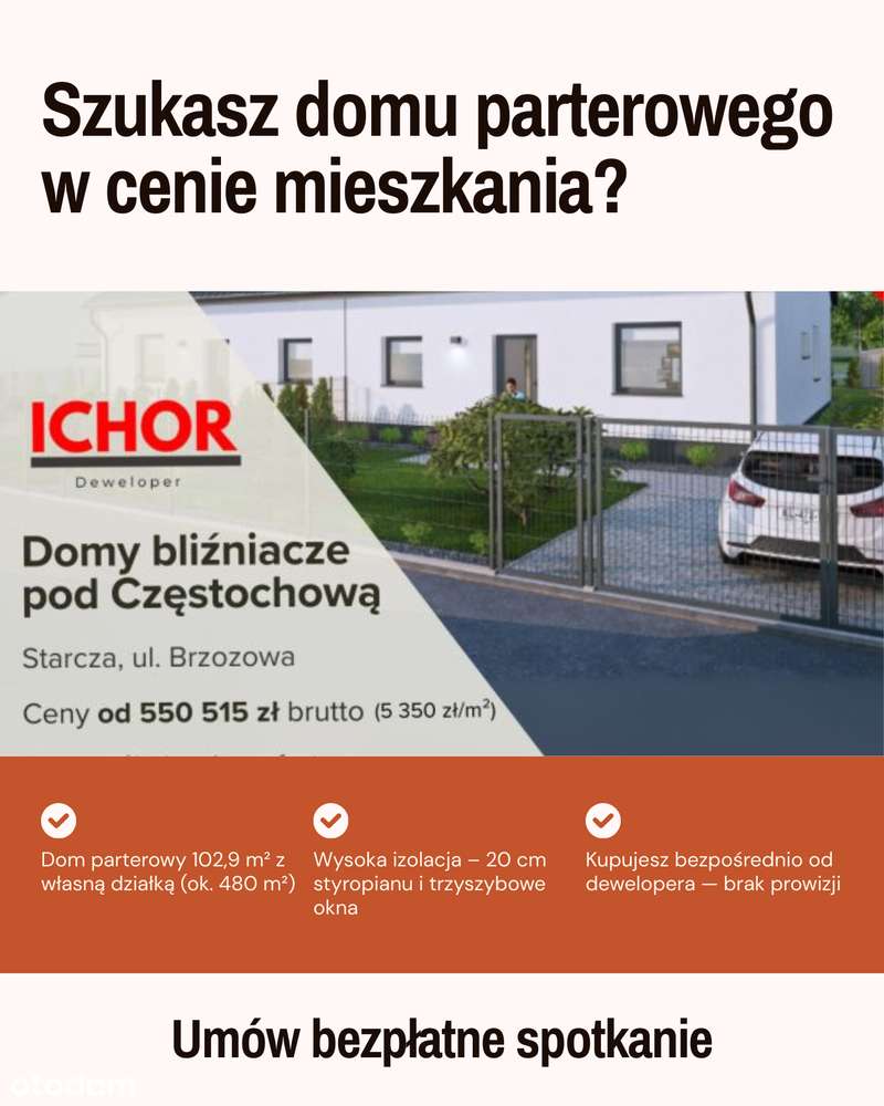 Nowy Dom Parterowy Starcza ul. Brzozowa ICHOR Deweloper