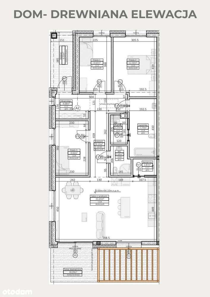 Nowoczesna zabudowa parterowa 100m2
