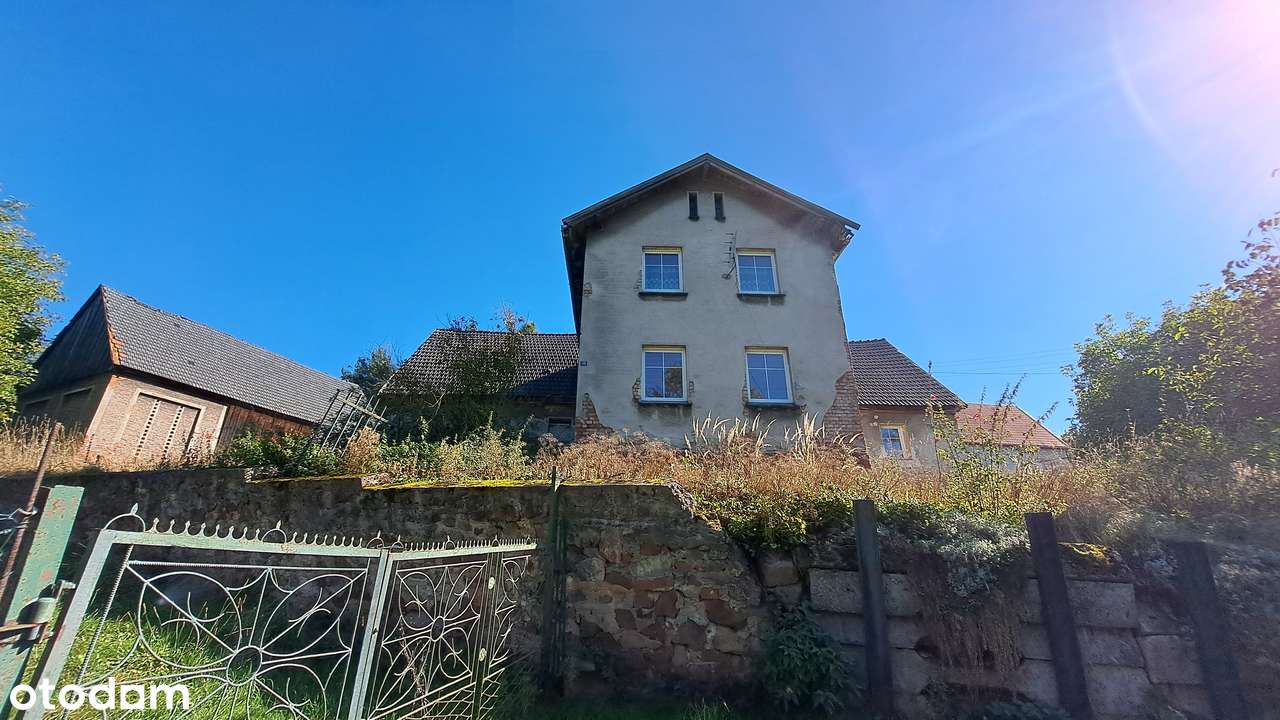 Przedwojenny dom na wzgórzu ze stodołą i stajnią