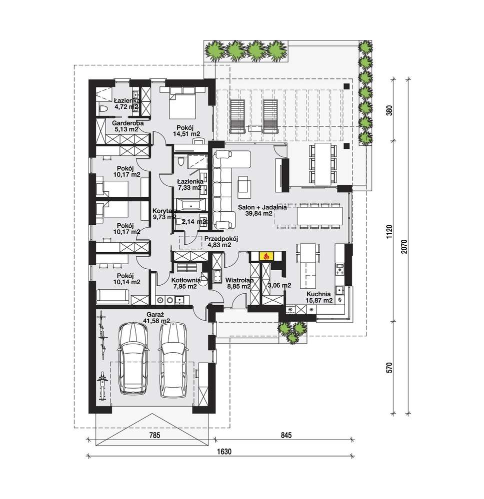 Nowoczesny dom, duży ogród, wysokość parteru 2,92m