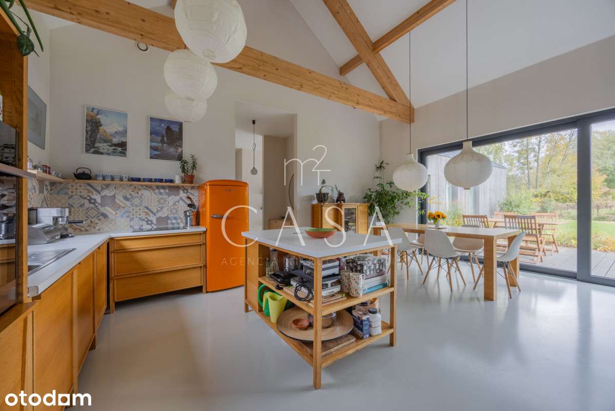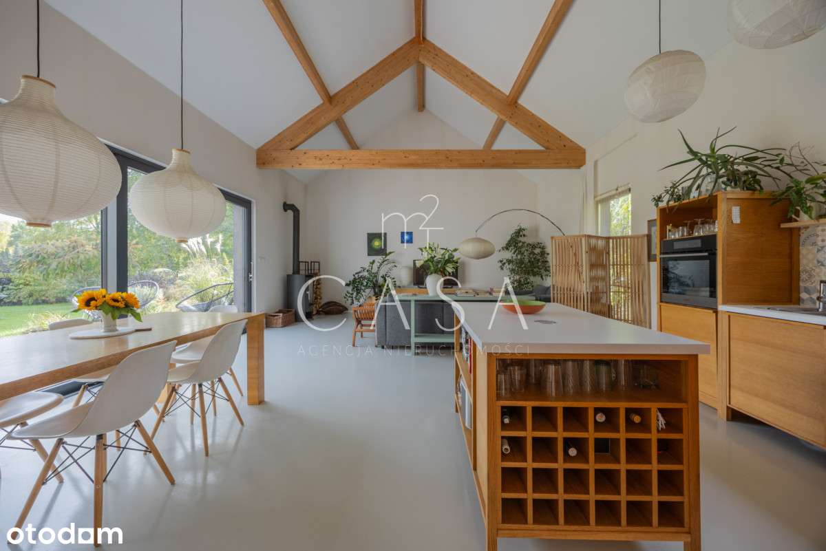 Piękny nowoczesny dom w pobliżu Podkowy Leśnej, przeszklony salon