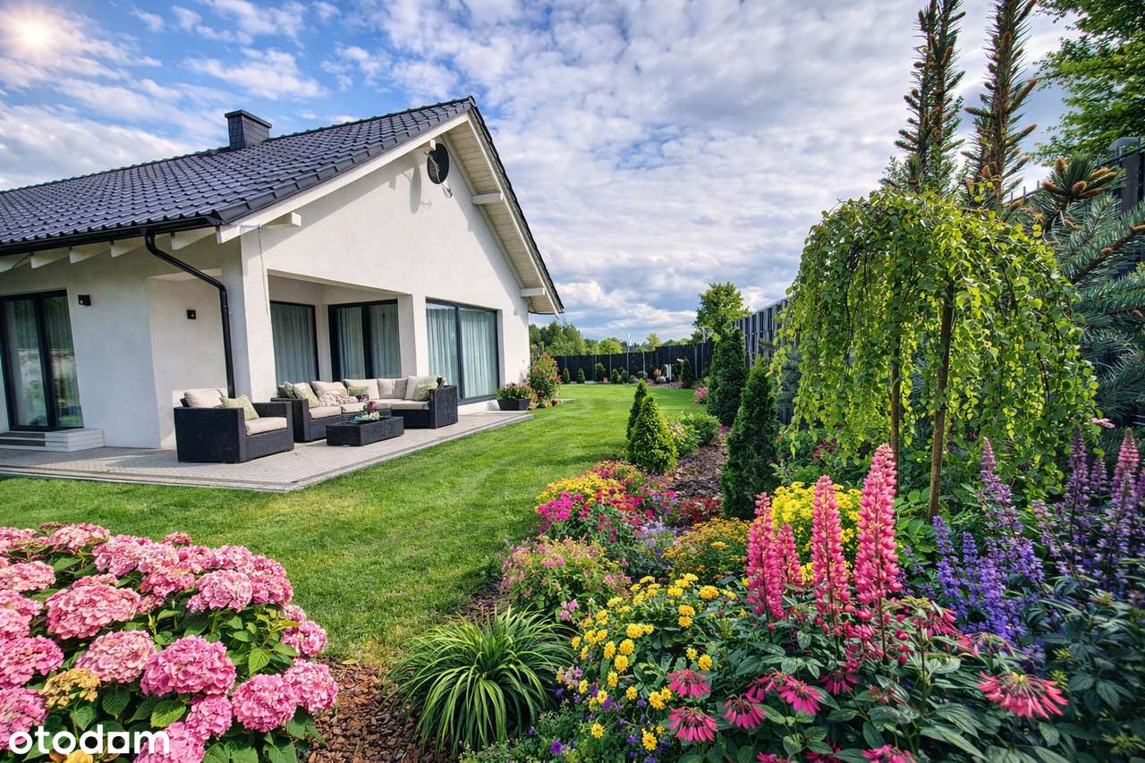 Nowoczesny dom 125m2 – ogród, garaż, PV, pompa c., kostka, blisko TG