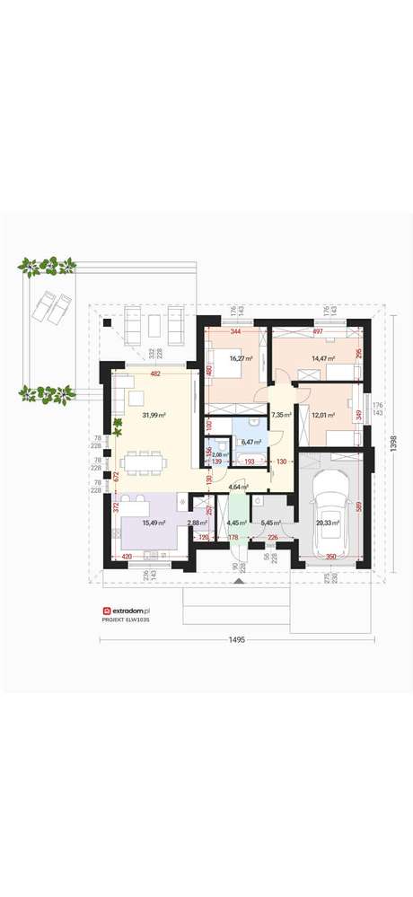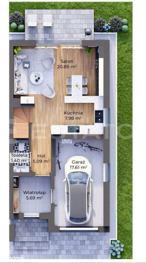 Parterowy dom wolnostojący ! Garaż w bryle budynku