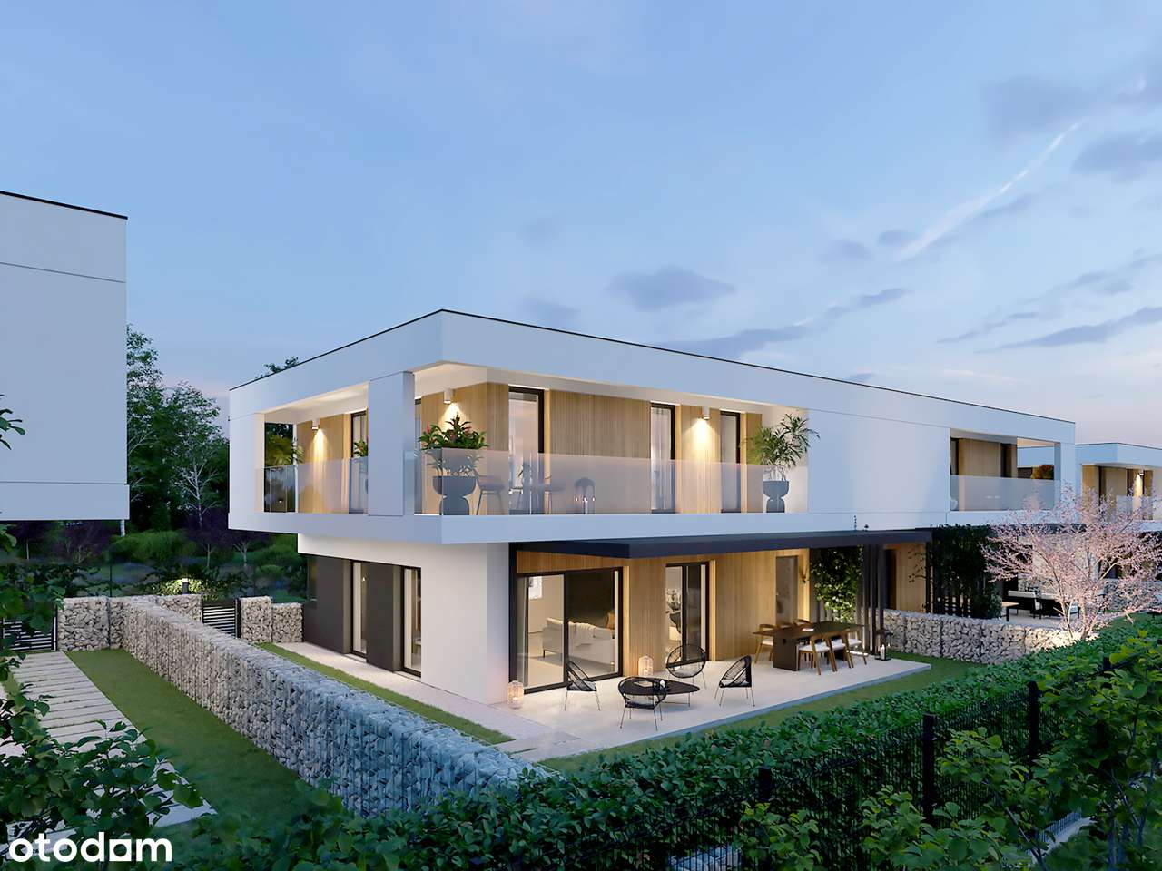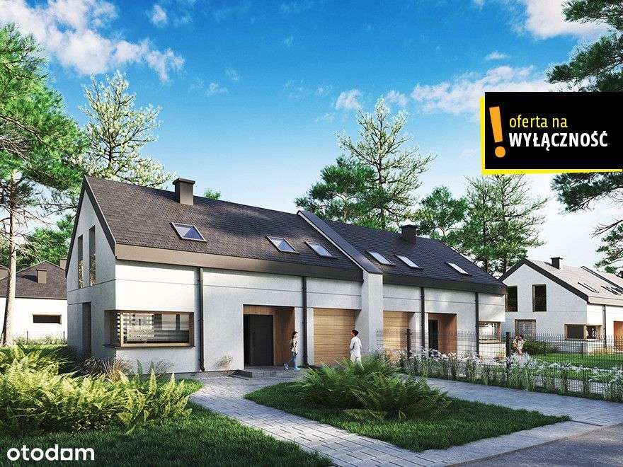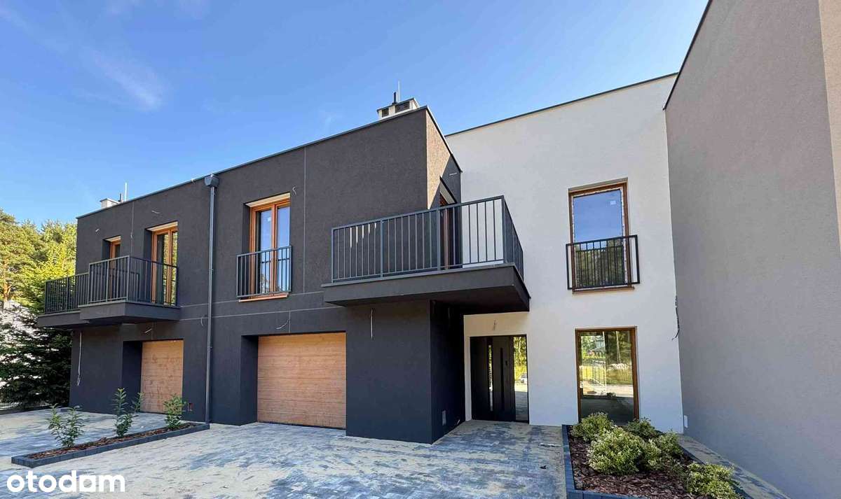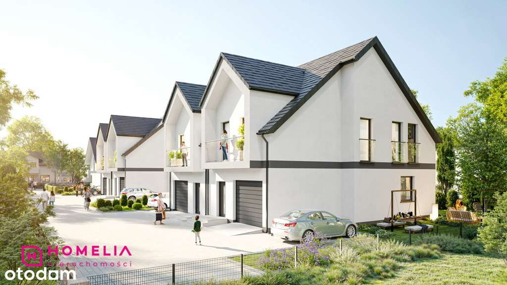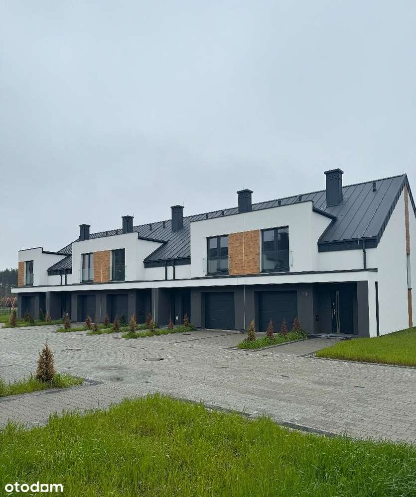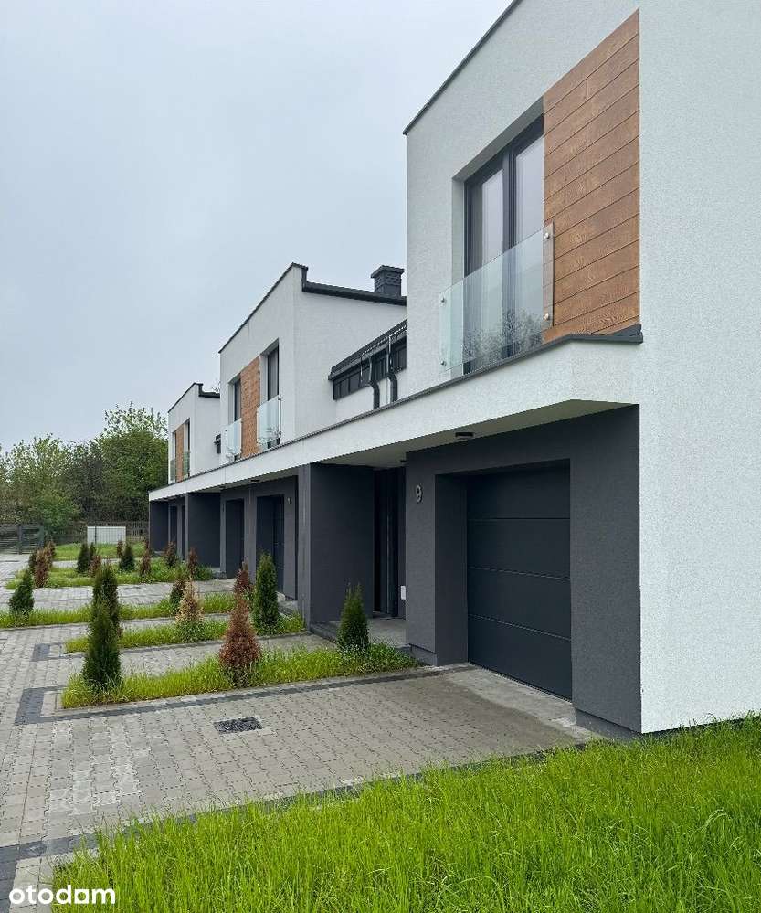 Nowoczesne domy w zabudowie bliźniaczej z garażem i ogródkiem