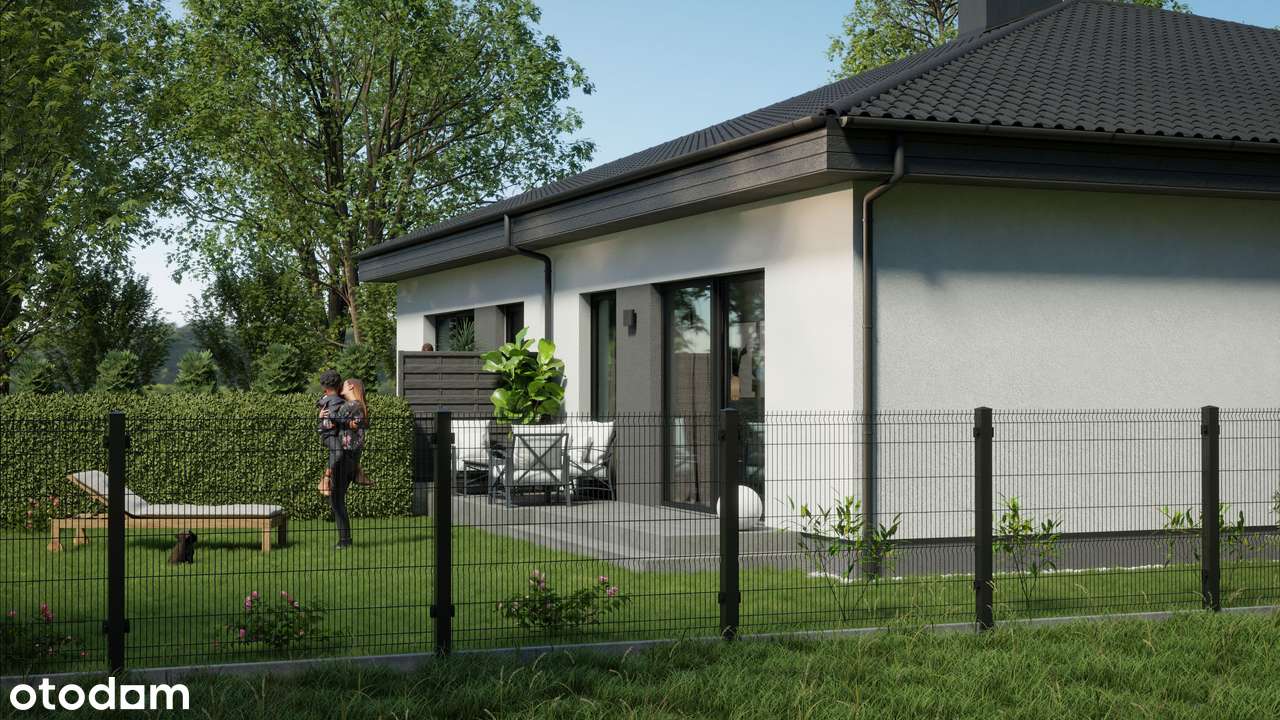 Parterowy dom w zabudowie bliźniaczej. Karolewko.