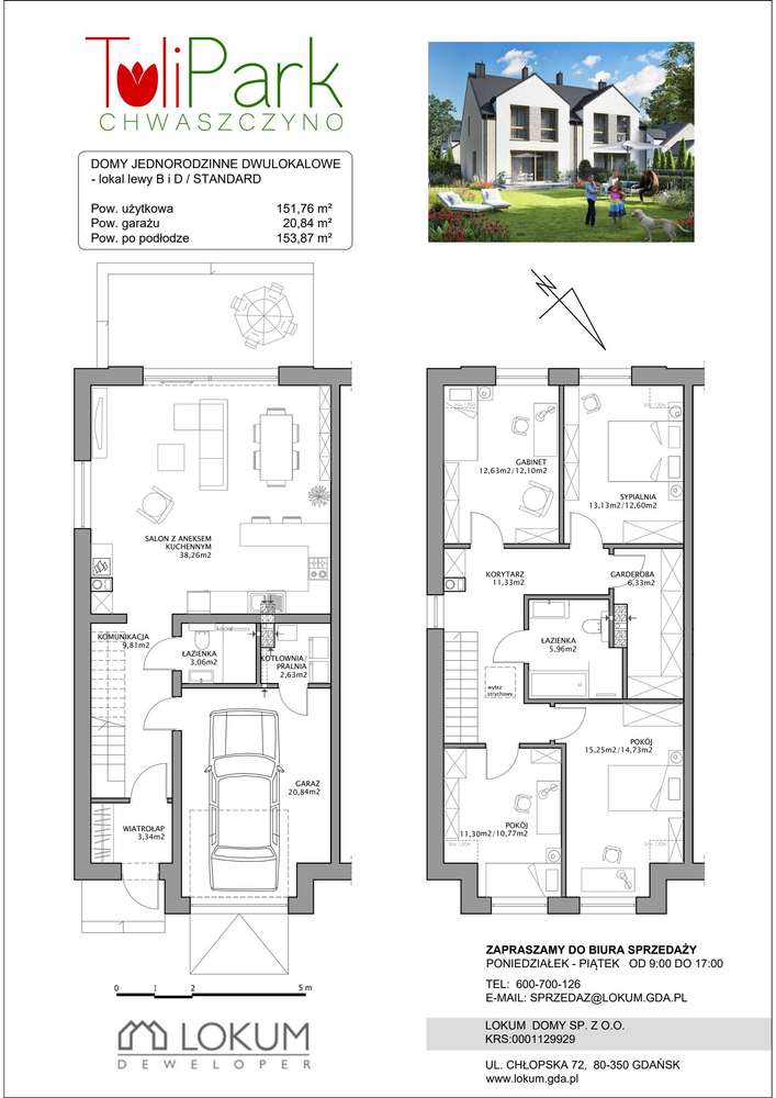 5-pokojowy dom 151m2 + ogródek Bezpośrednio