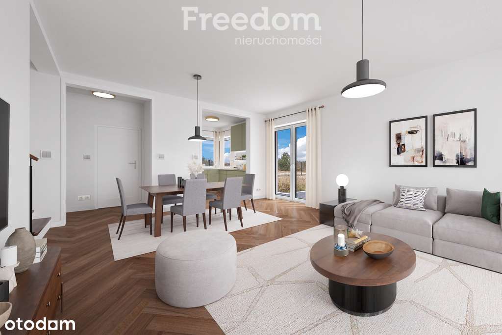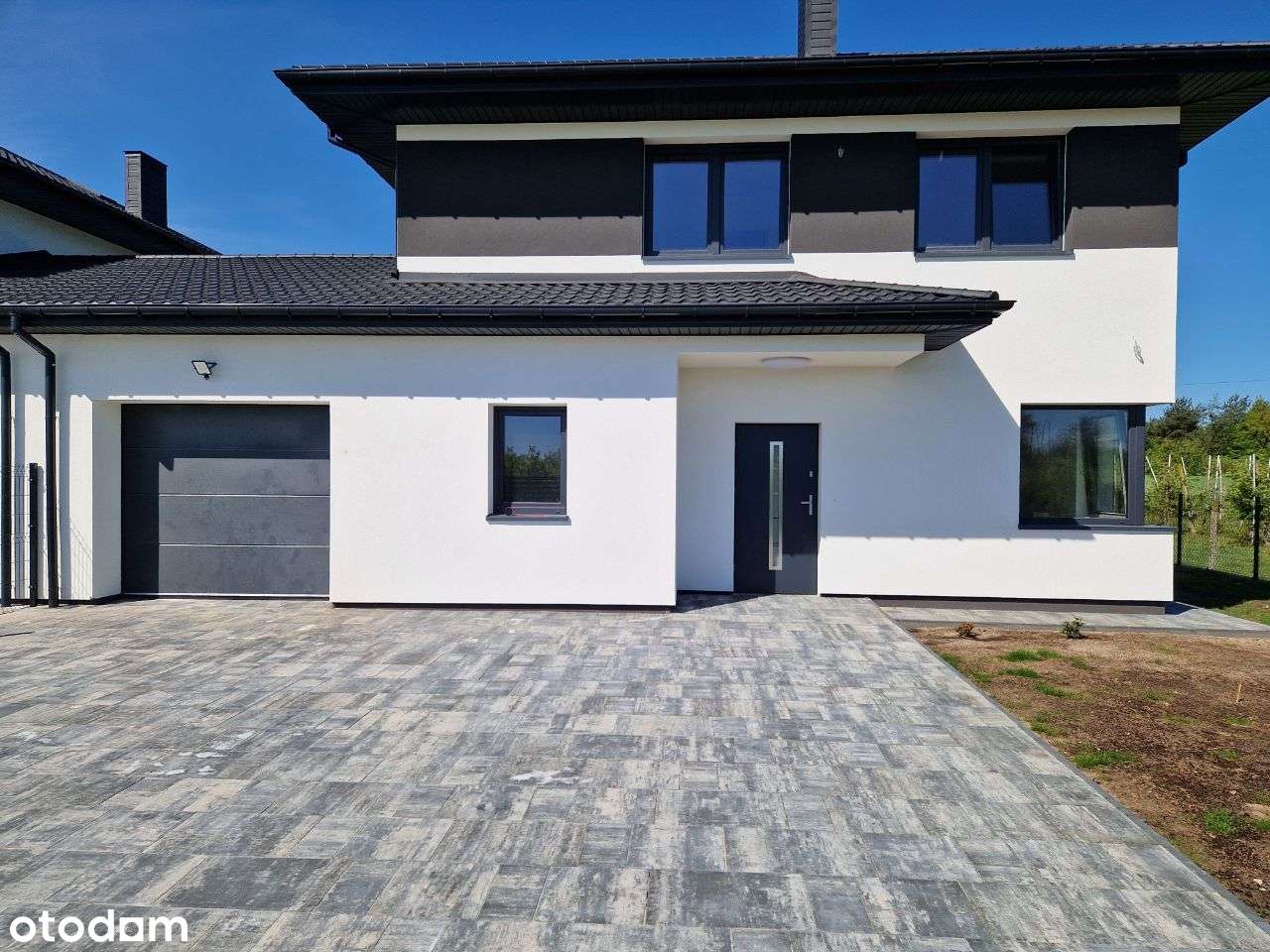 Dom bliźniak z garażem w otoczeniu natury