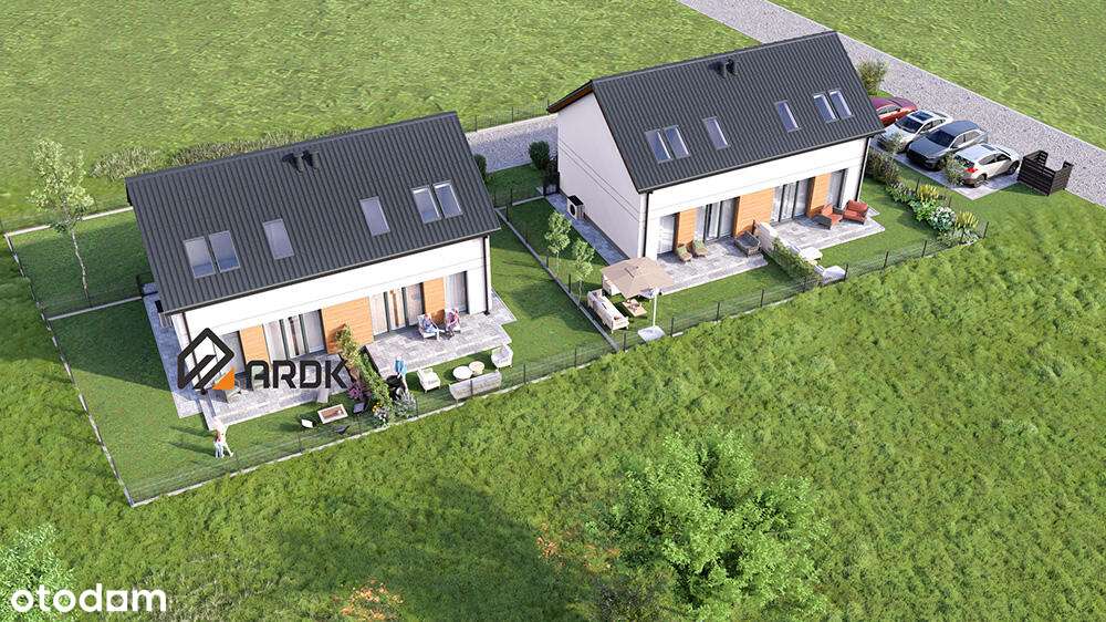 Bliźniak 101,5 m² z pompą ciepła działka 515 m² Leśniów Wielki