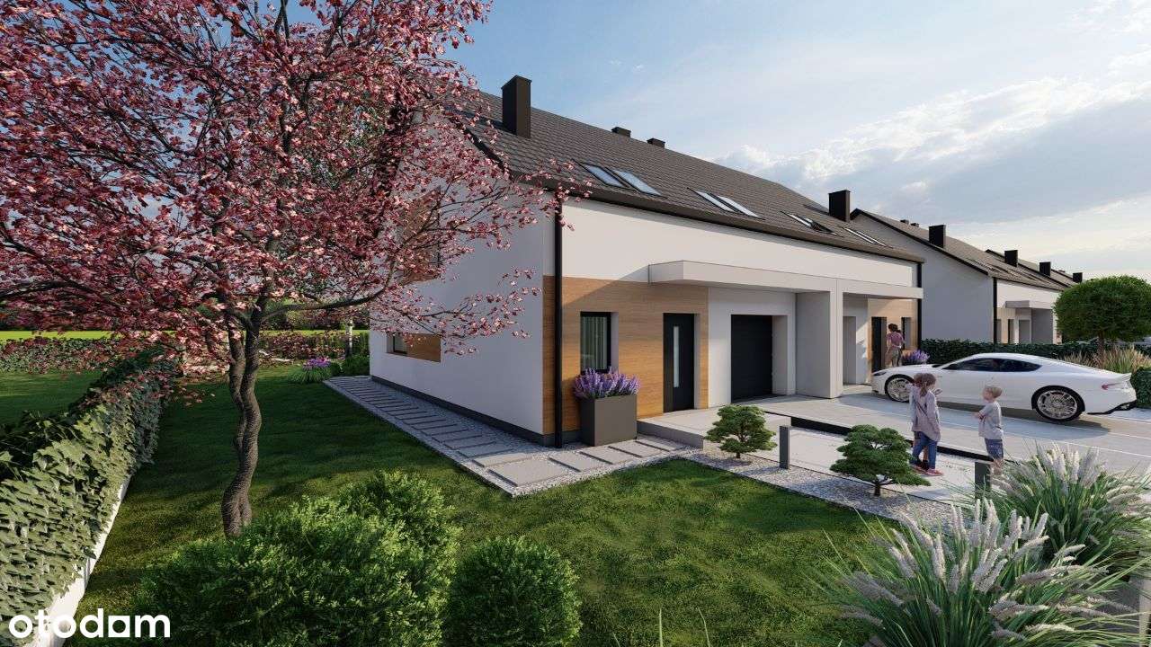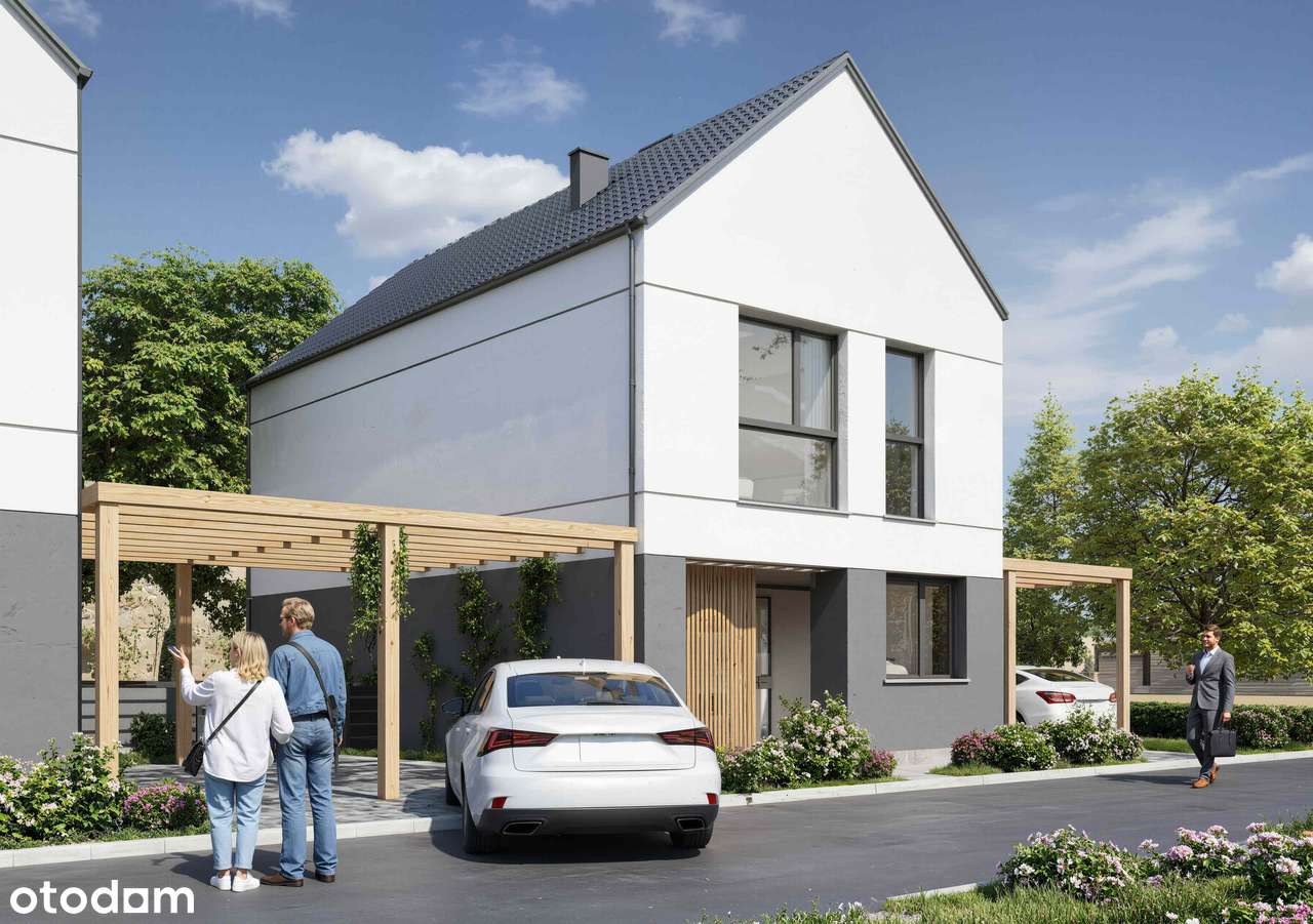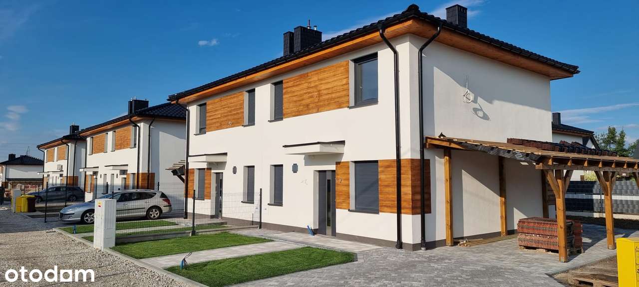 Dom w zabudowie bliźniaczej z wiatą garażową/garaż
