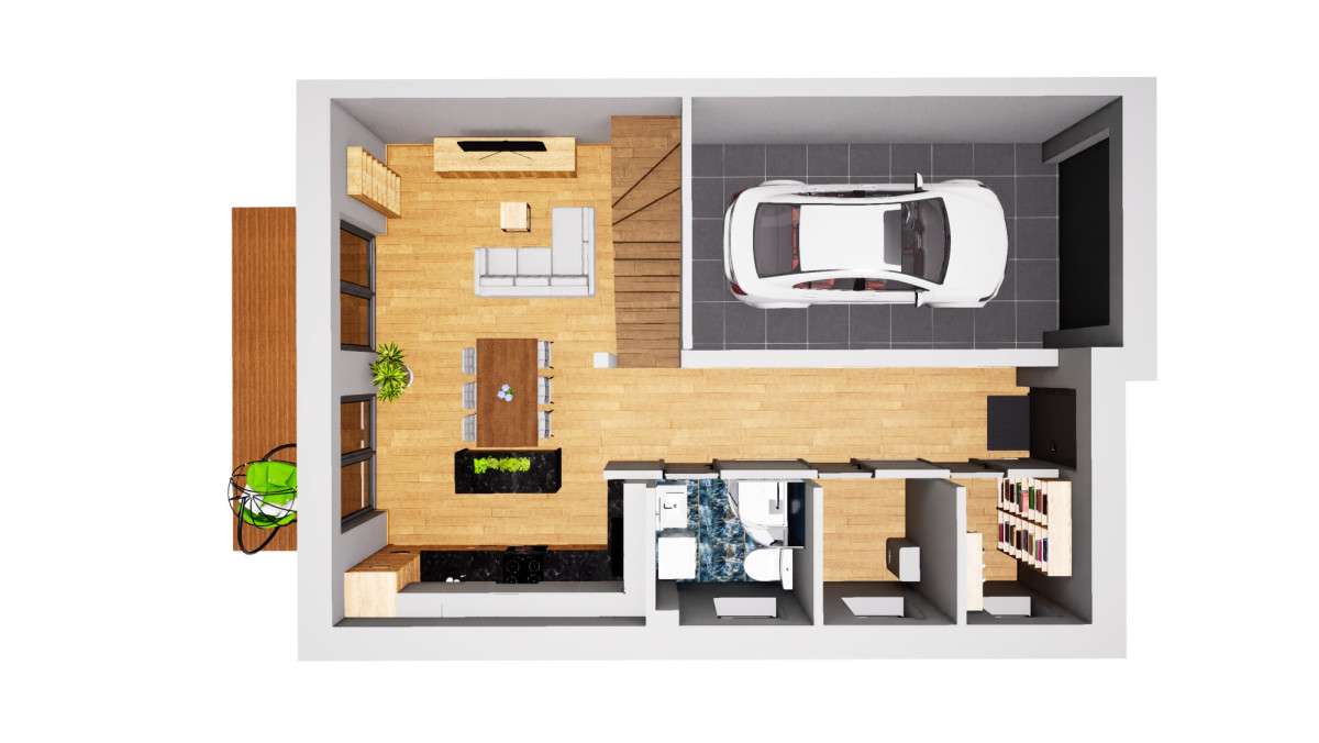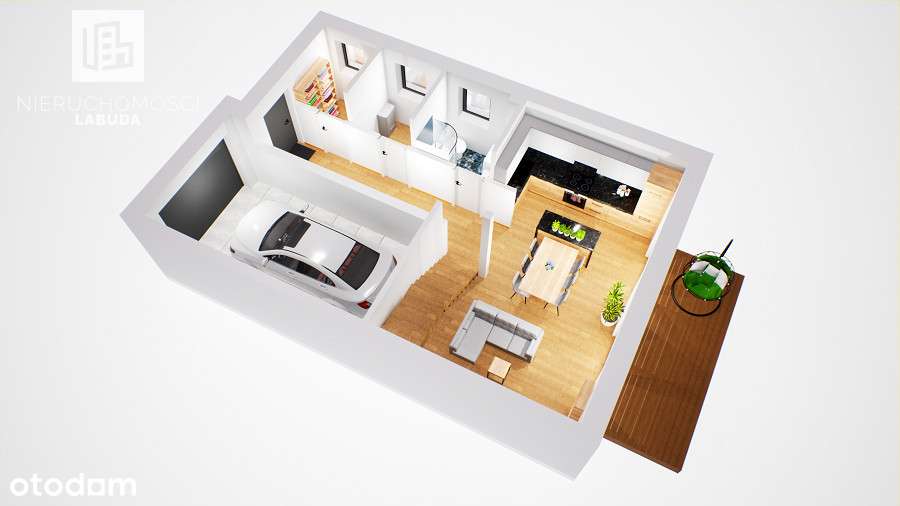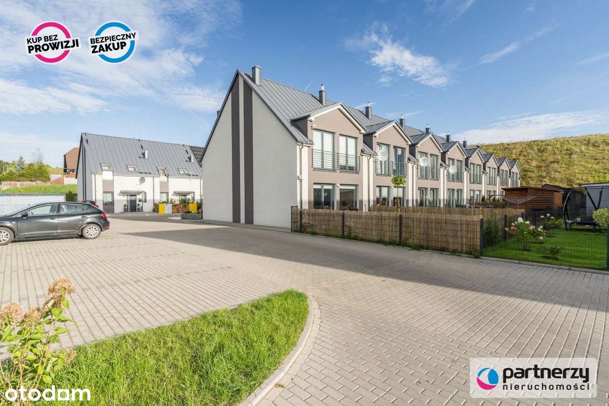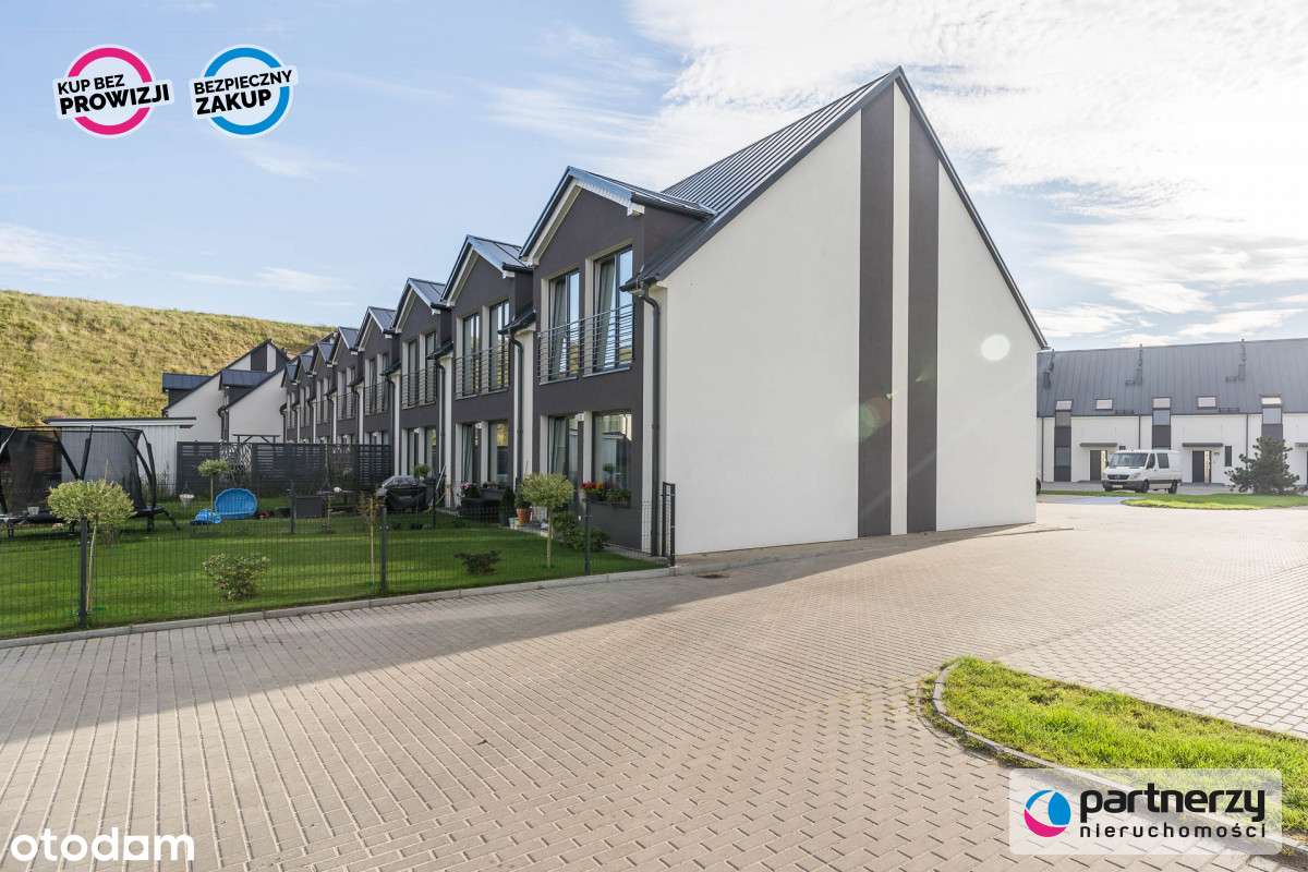 Dom szeregowy z garażem, ogrodem i pompą ciepła