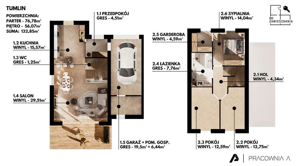 Nowoczesny bliźniak 140,82 m² z garażem – Bilcza