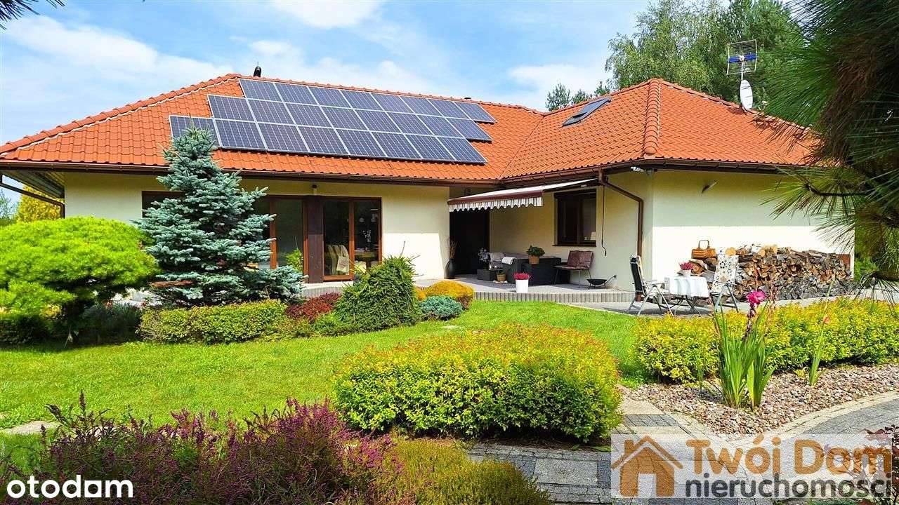 Prezentujemy piękny, nowoczesny dom, który zachwyca zarówno designem, jak i funkcjonalnością. Dom położony jest na zadbanej, w całości ogrodzonej zwieńczonej bramą automatyczną, 21-arowej działce, w o...