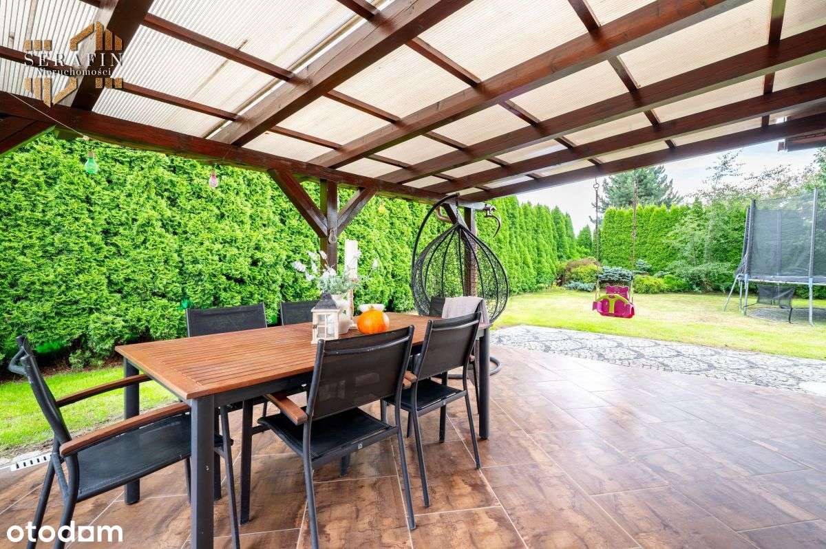 Piękny dom z zadaszonym tarasem i wiatą
