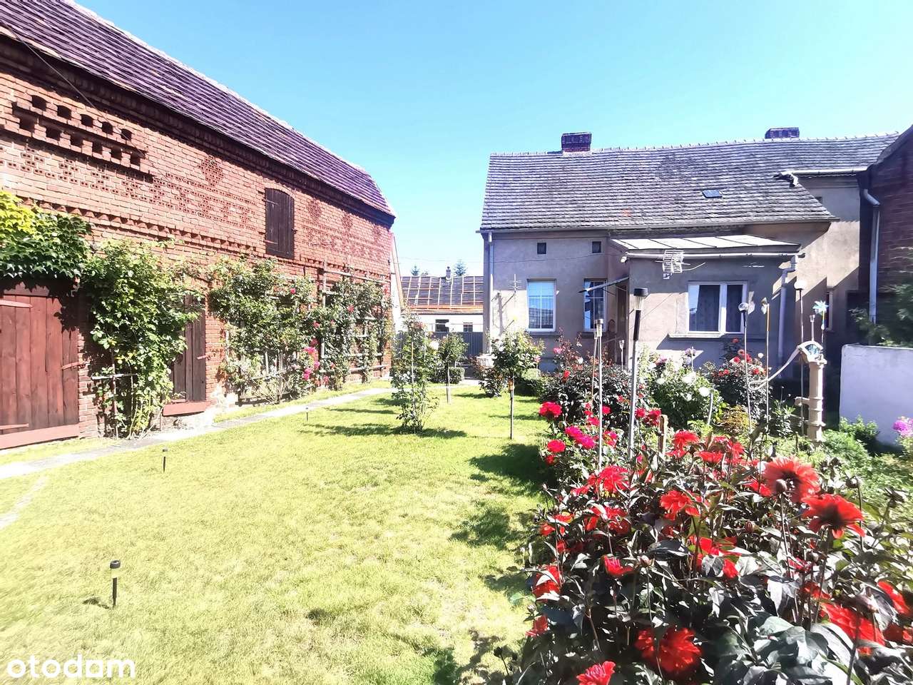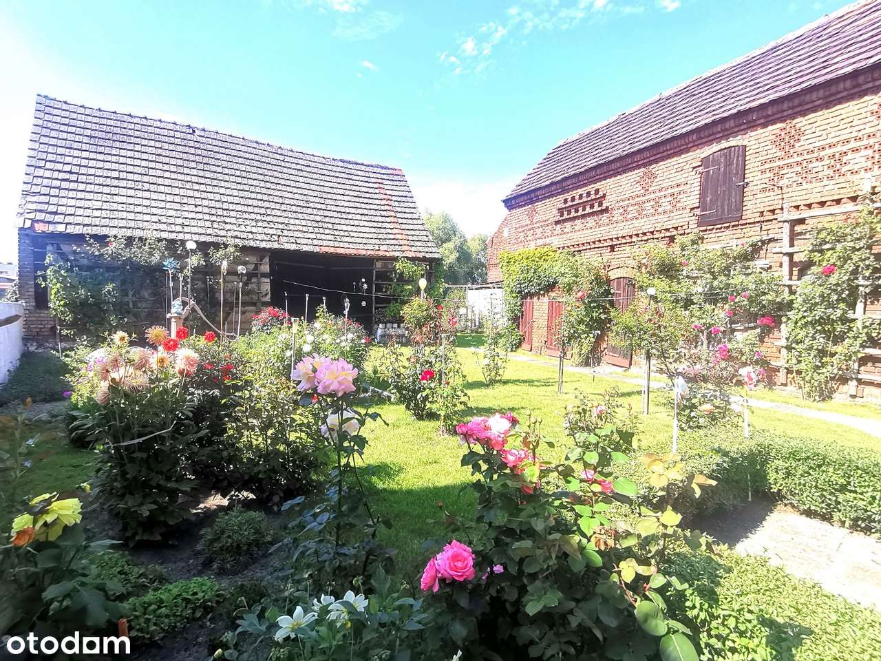 Dom w Trzcielu, duży budynek gospodarczy, ogród