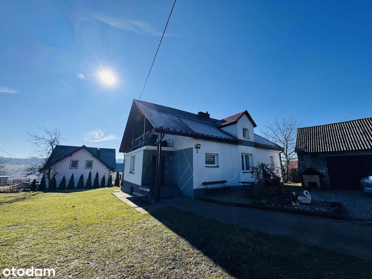 Dom z pięknym ogrodem i budynkiem usługowym