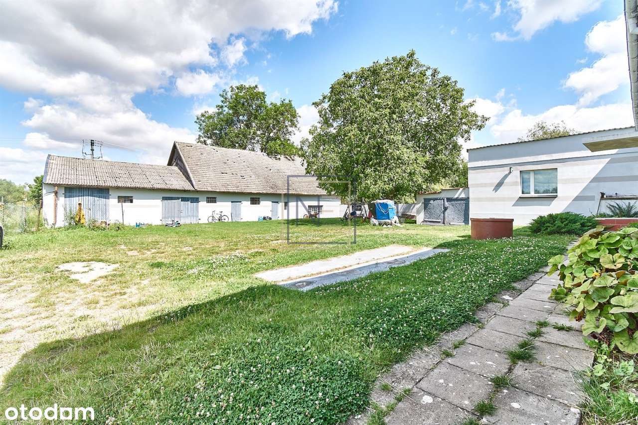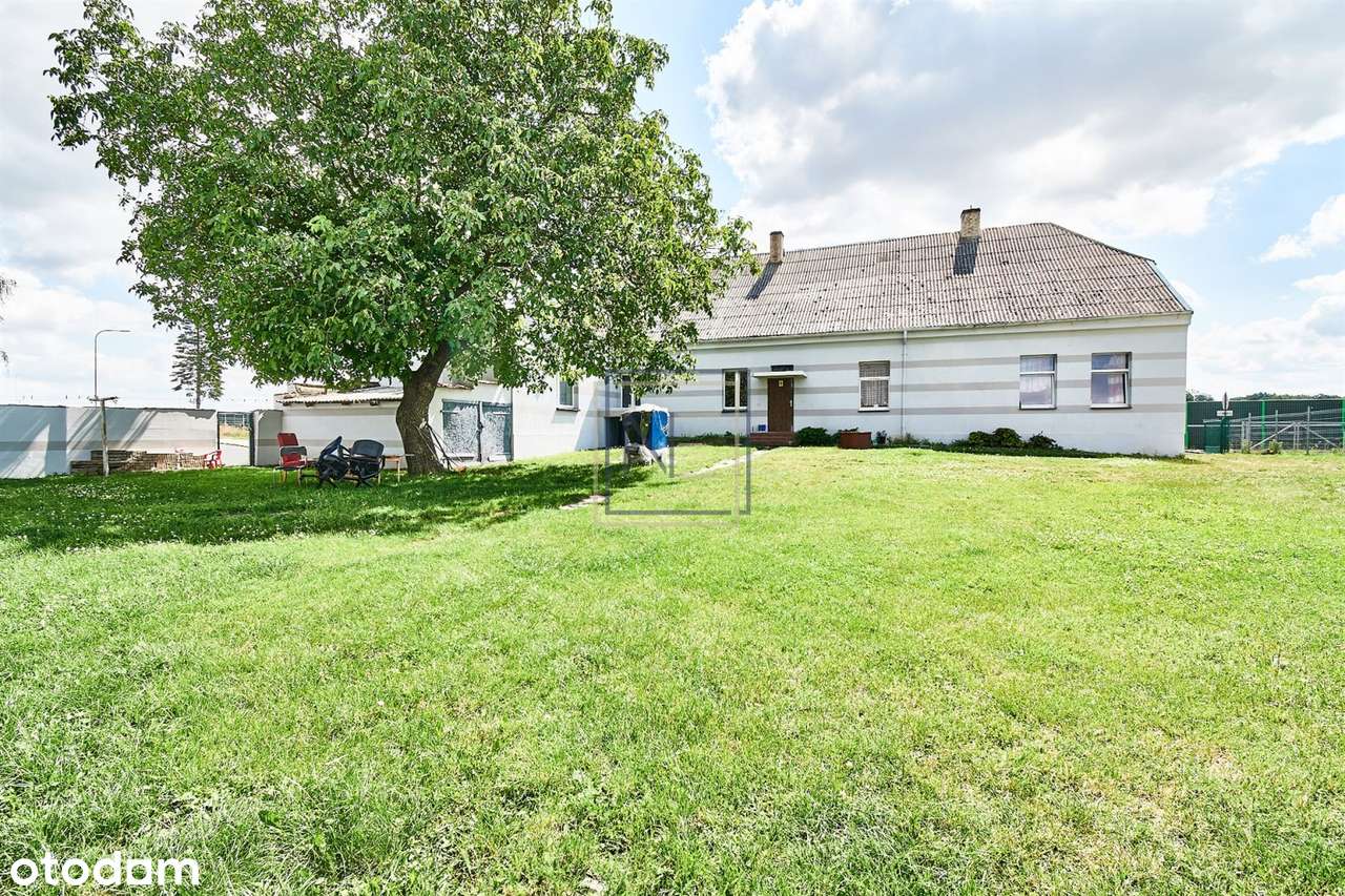 Dom po remoncie z budynkami usługowymi w centrum