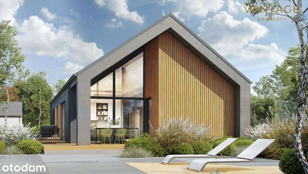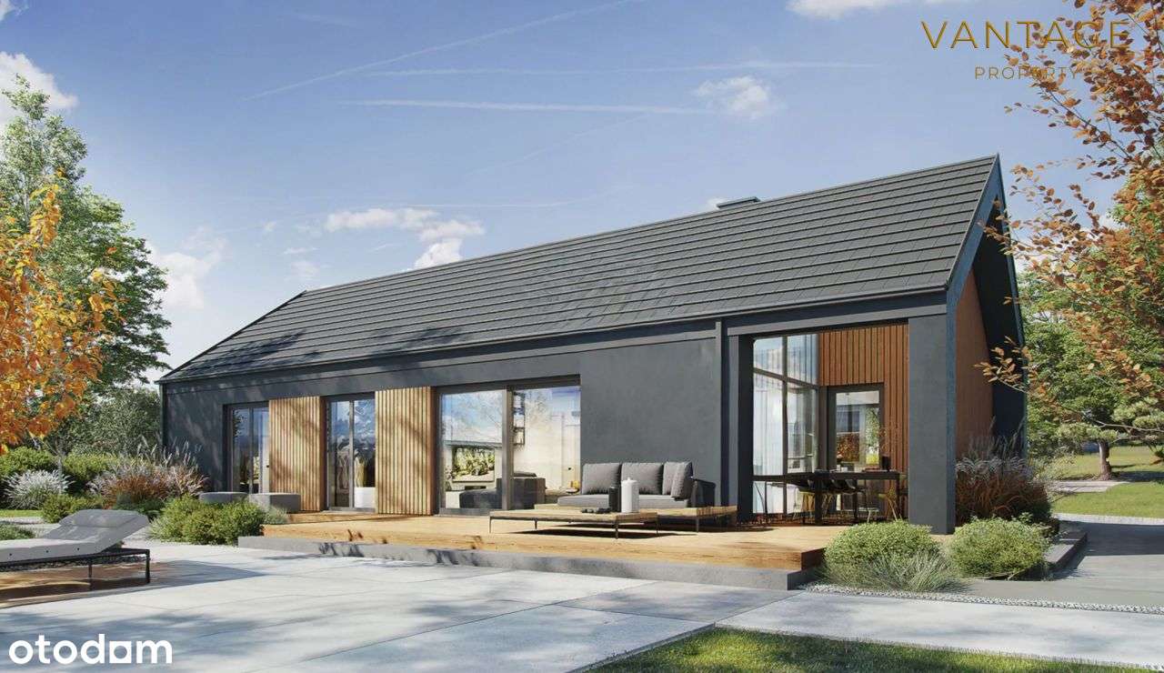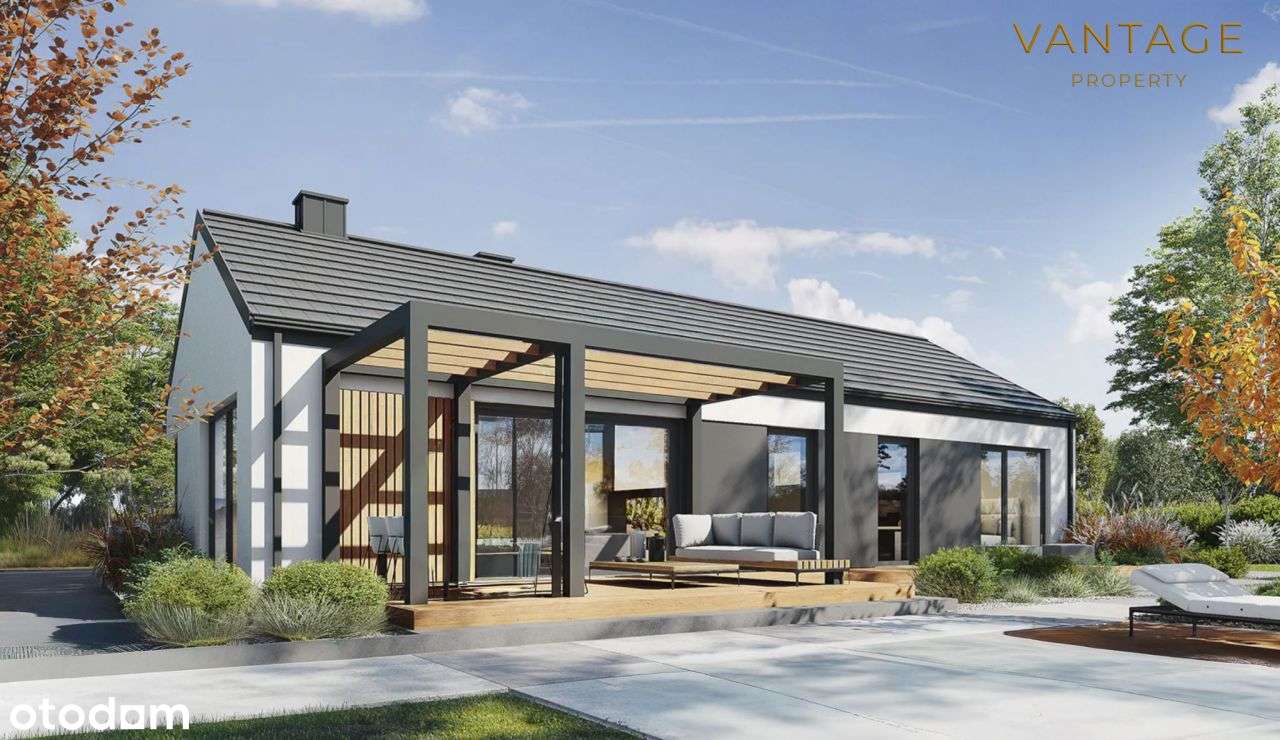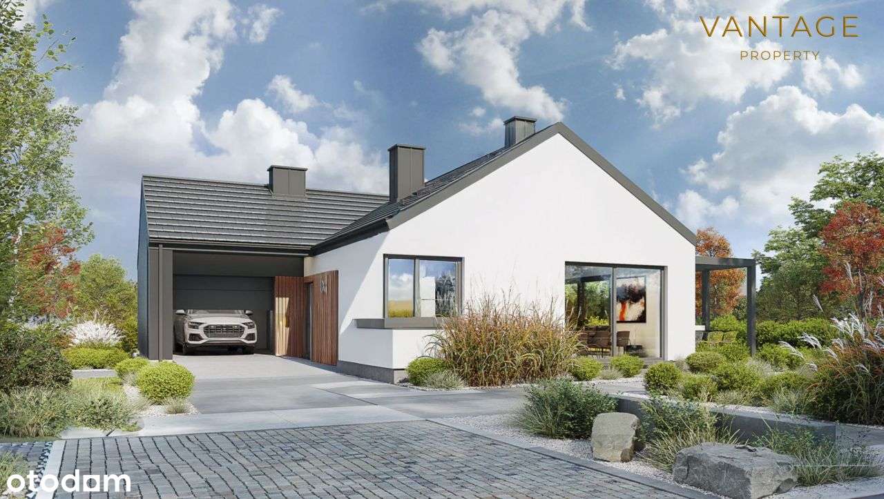 Nowoczesny dom parterowy z garażem (powiat wielicki)
