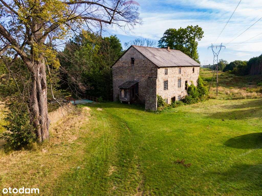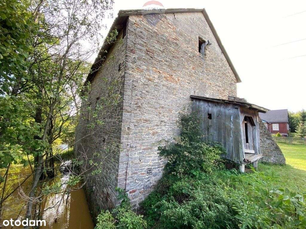 Siedlisko 12 ha rzeka stawy las drewniany dom Młyn