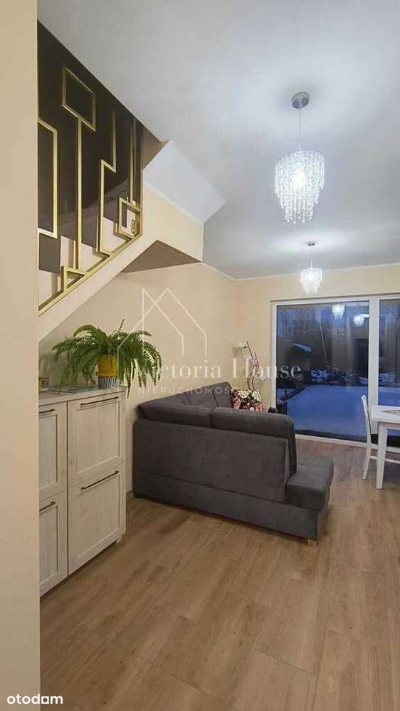 Nowy dom szeregowy z wiatą, ogrodem, fotowoltaiką.