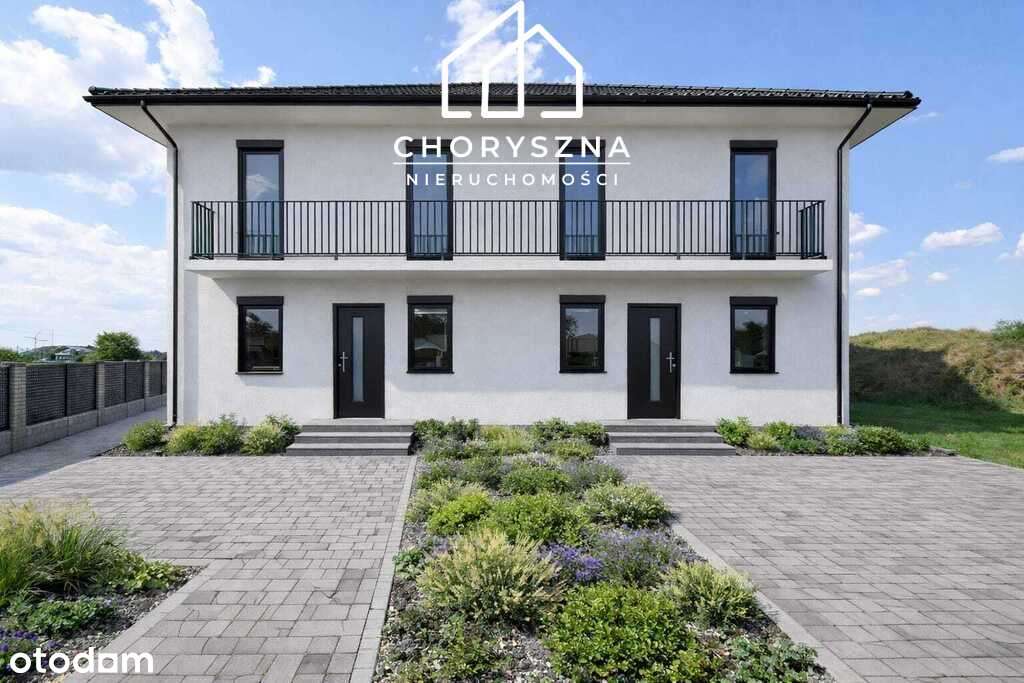 Nowy dom szeregowy z garażem i wiatą, fotowoltaiką, skrajna działka.