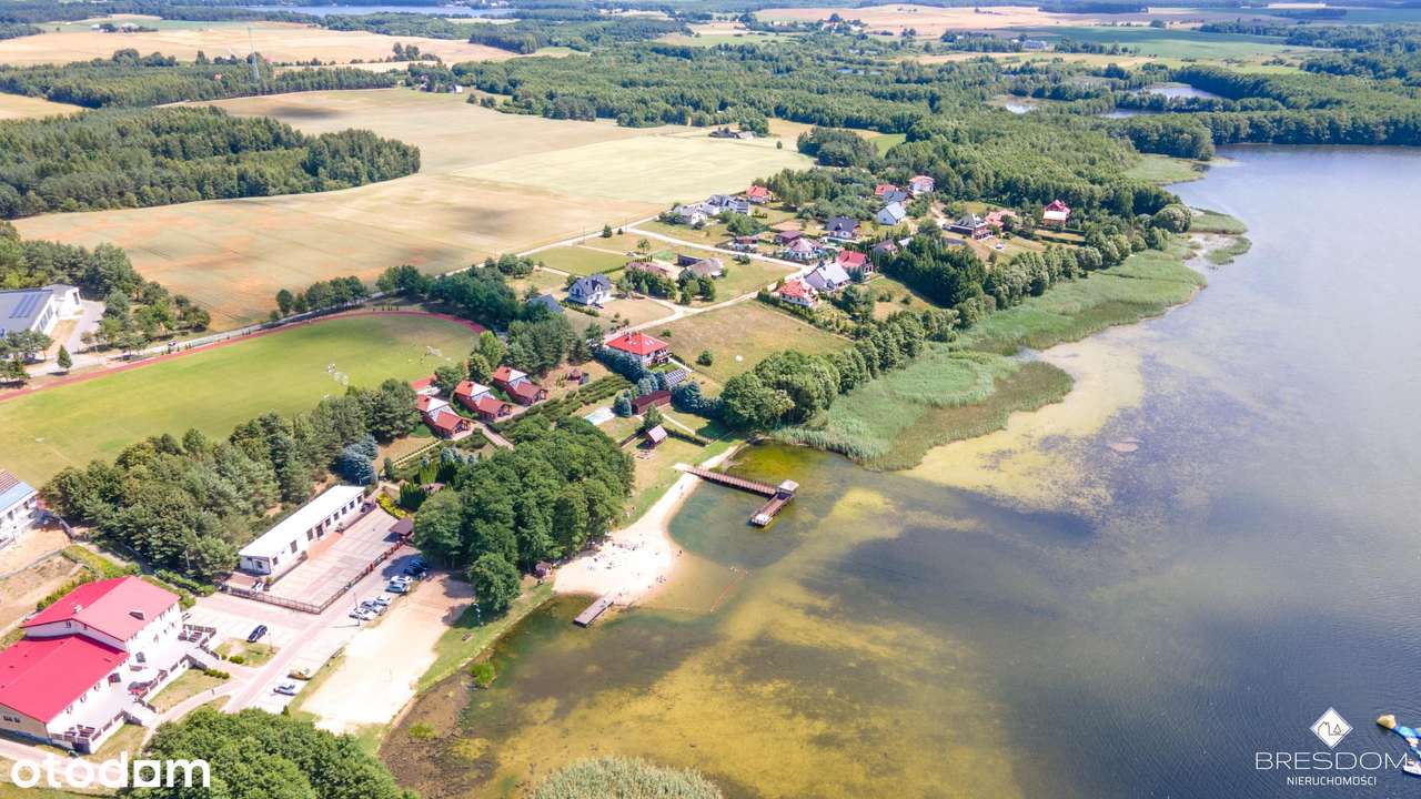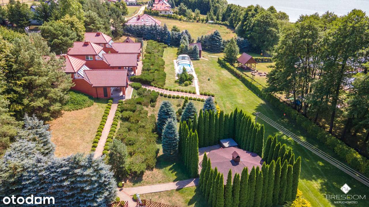 Dom nad jeziorem z własną linią brzegową.