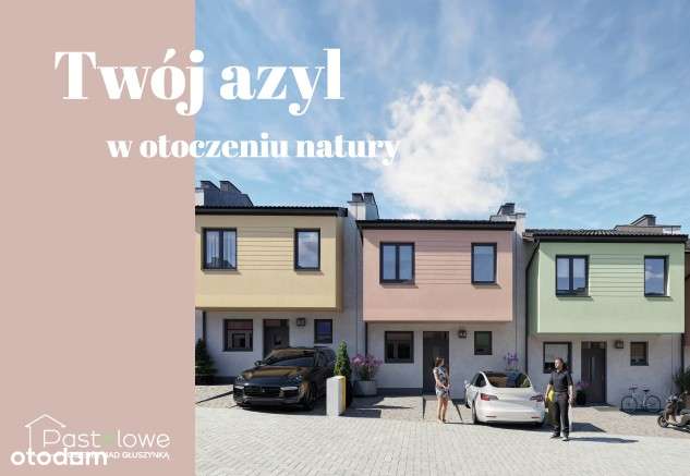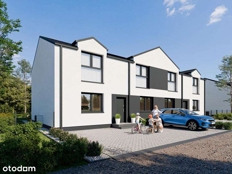 Nowe mieszkania w zabudowie szeregowej. Teren zielony.