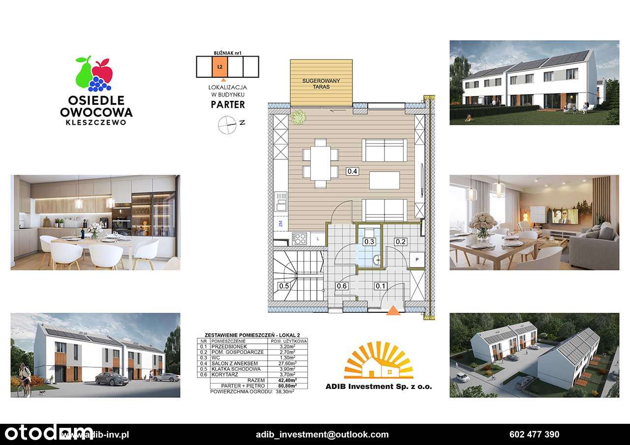 Domy dwulokalowe 81,39 m², Śródka, pompa ciepła