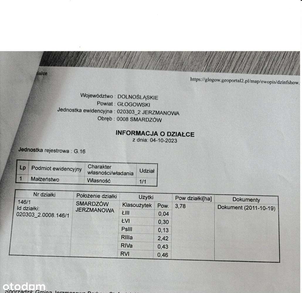 Działka rolno-budowlana 3,78 ha – 1,5 ha w MPZP pod zabudowę Smardzów