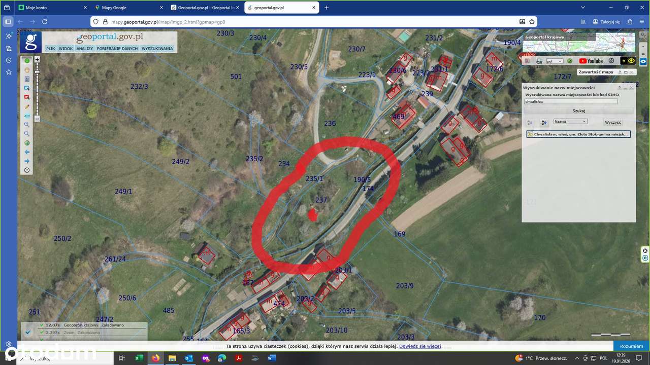 Działka słoneczna we wsi Chwalisław o pow. 2100 m2 w gminie Złoty Stok
