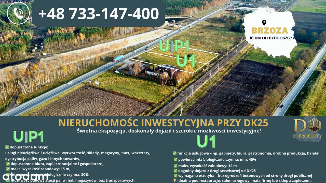 Teren inwestycyjny przy DK25, mpzp U i U/P, przy jeździe z obwodnicy