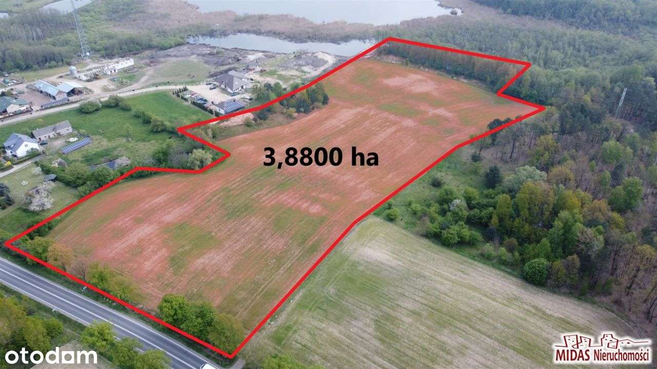 3,87ha w Krzyżówkach z dostępem do jez.Ostrowite!