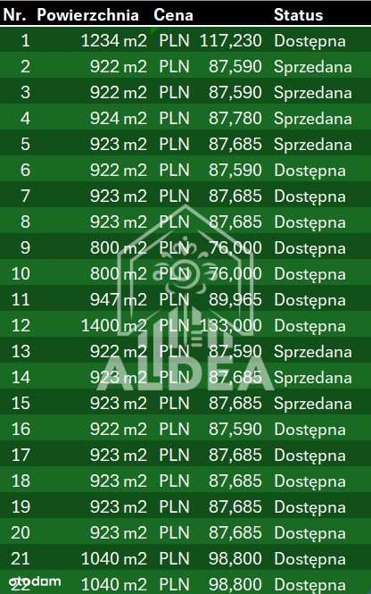 - Cena za metr kwadratowy