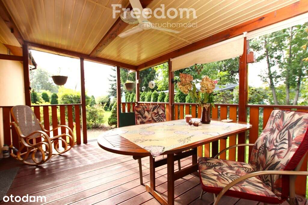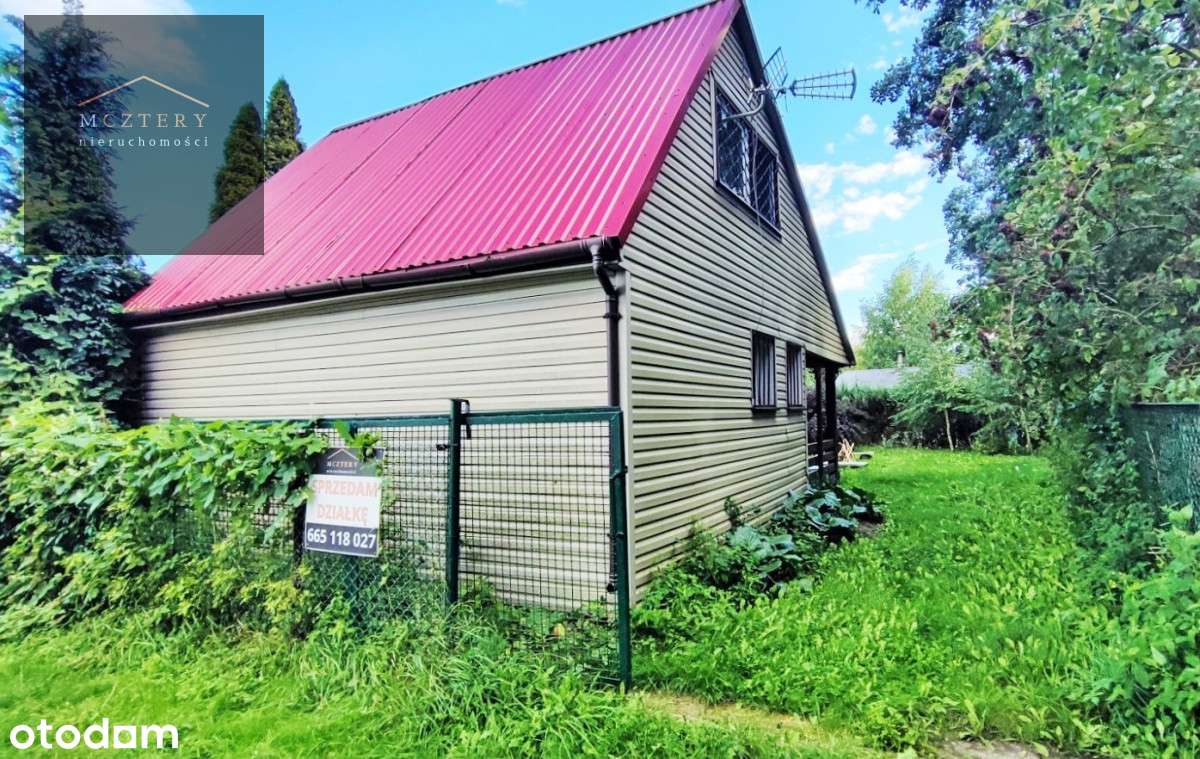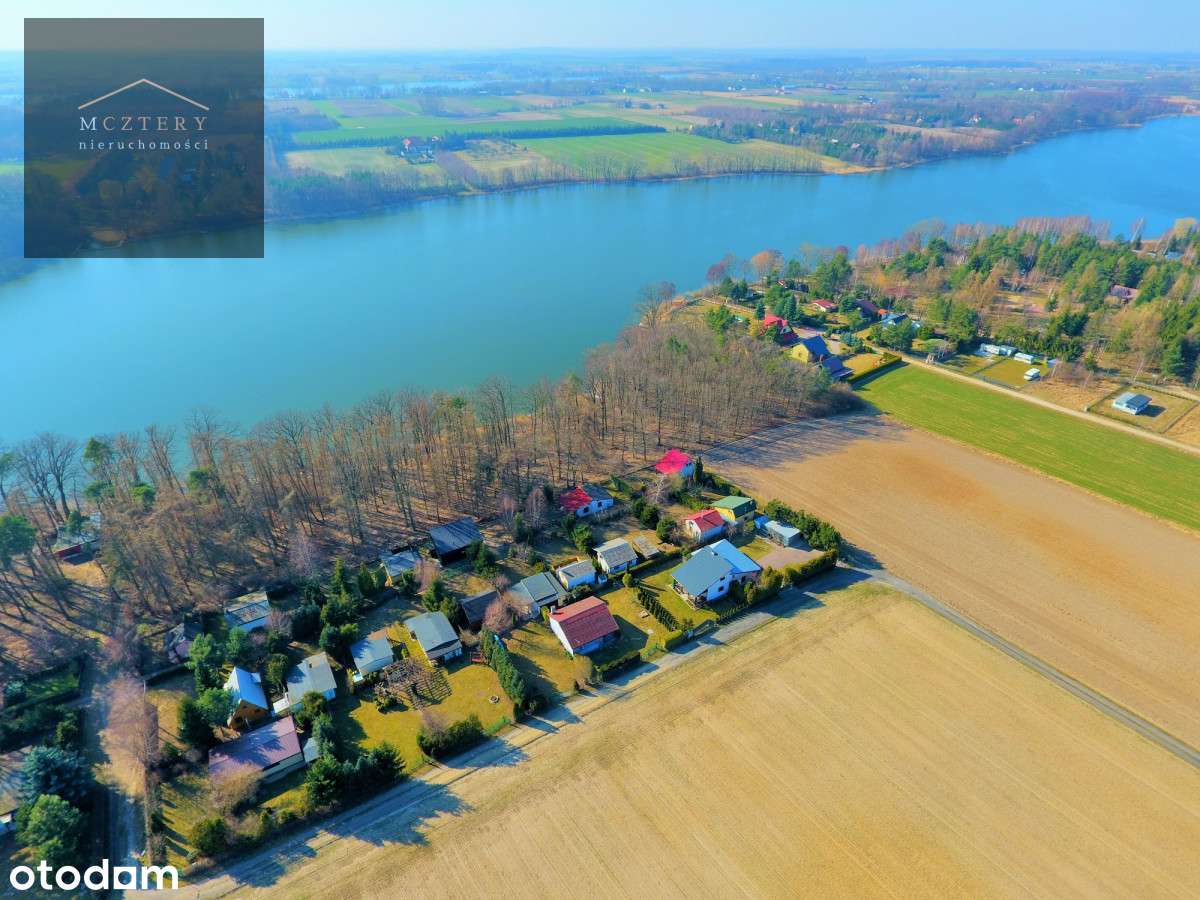 Działka rekreacyjna z domkiem przy jeziorze.