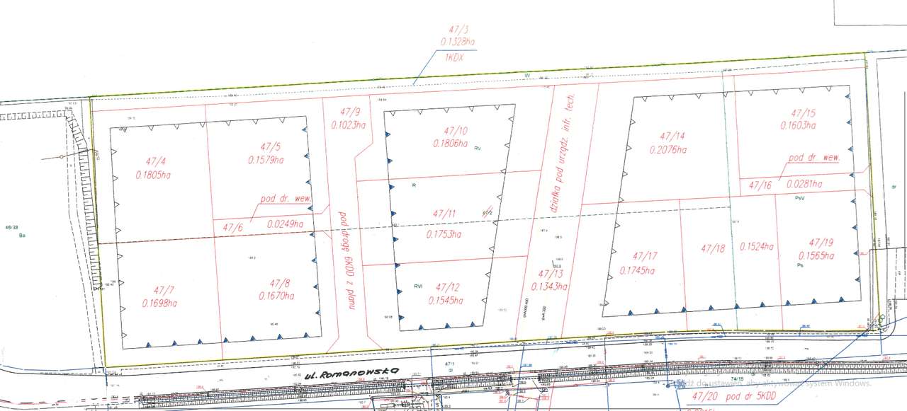 Działka 1415 m², ROMANÓW, ul. Aleksandrowska