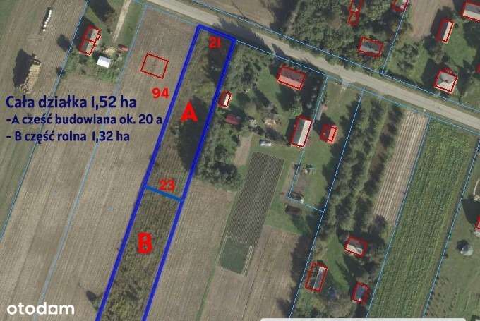 Działka rolno-budowlana 1,52 ha Dąbrowa gm. Ludwin
