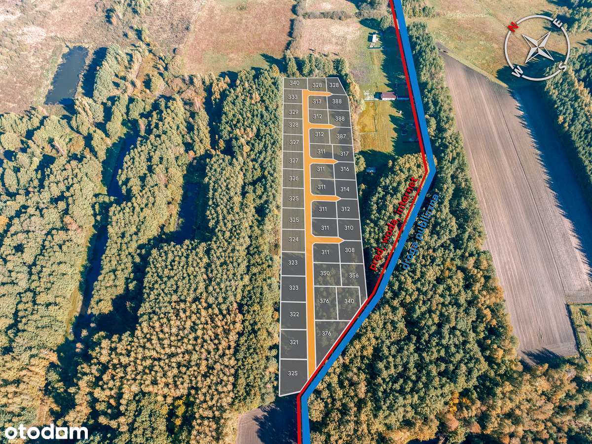 Działki 350 m od plaży jeziora Zagłębocze, zgłoszenie na budynki 50m2.