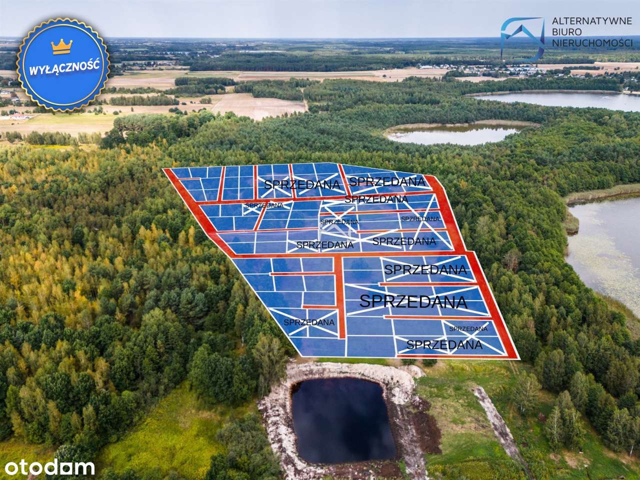 Działki 350 m od plaży jeziora Zagłębocze, zgłoszenie na budynki 50m2.